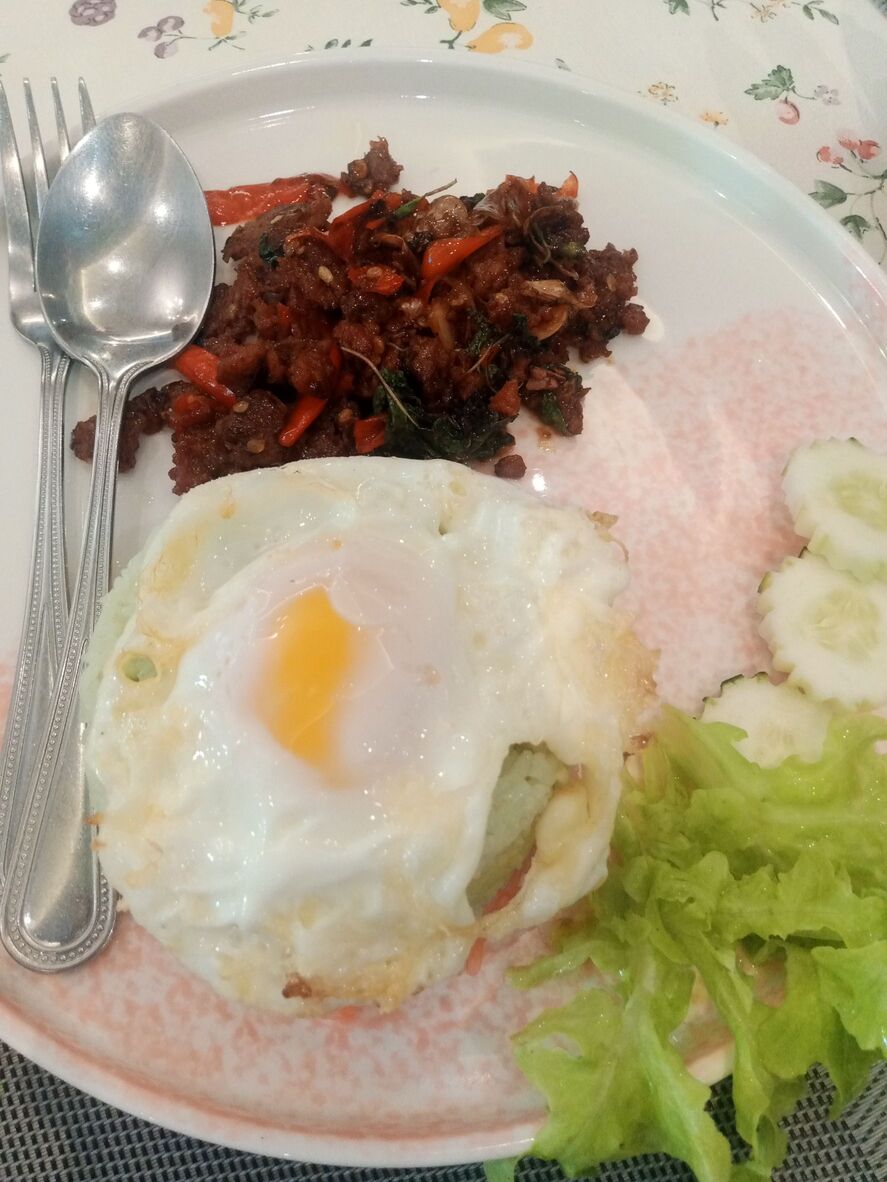 ข้าวกะเพราเนื้อ ไข่ดาว