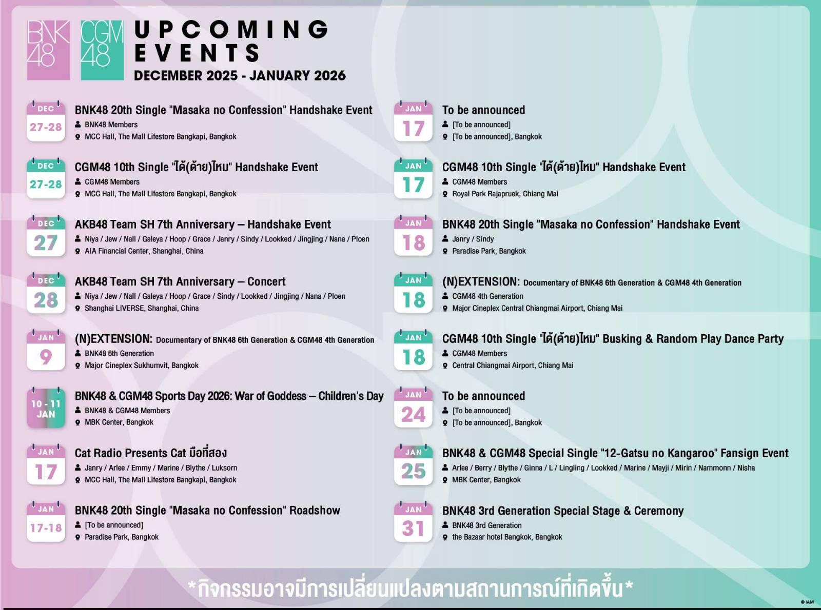 หนู๋ไม่มีเงินแล้ว ตารางงาน [💜💚] Event Schedule BNK48 & CGM48 เดือน ธันวา - มกราคม
