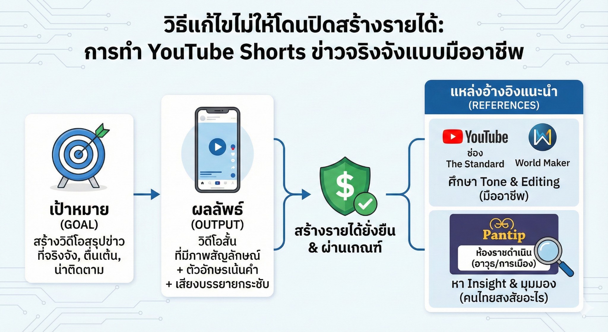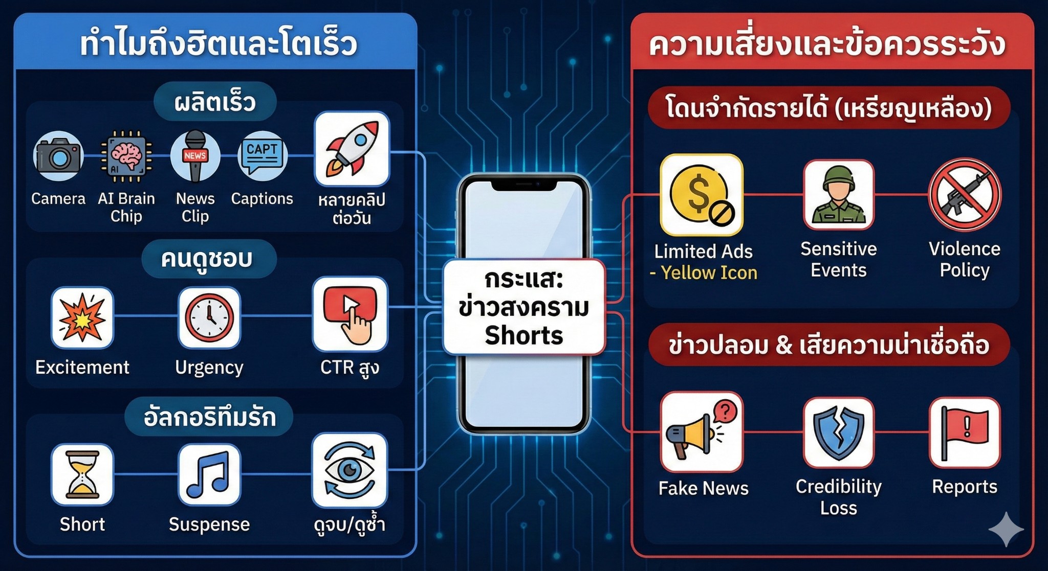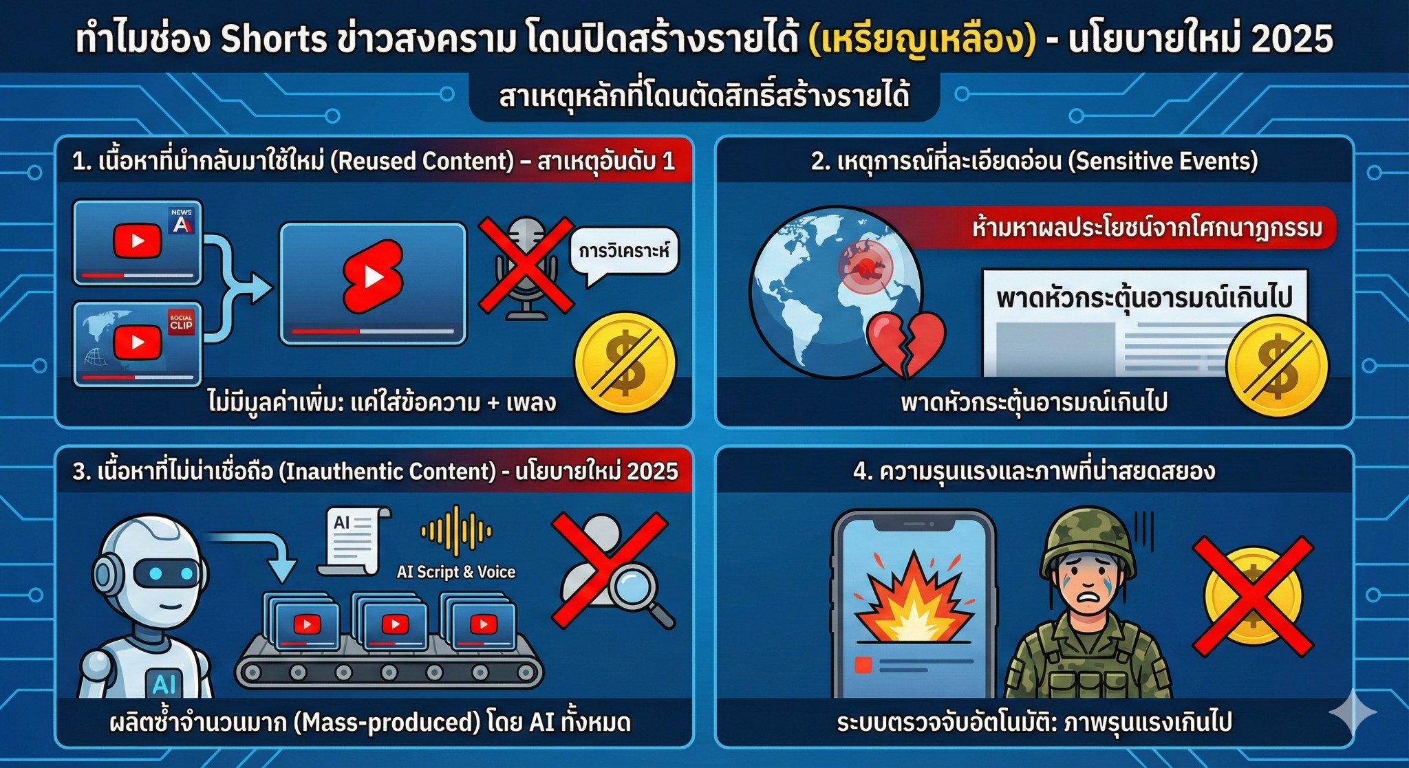 "ล่าสุดจากรายได้หลักแสนสู่ ‘ศูนย์’ ในวันเดียว... บทเรียนราคาแพงจากการทำช่องข่าวสงครามใน YouTube Shorts"และการแก้ไข