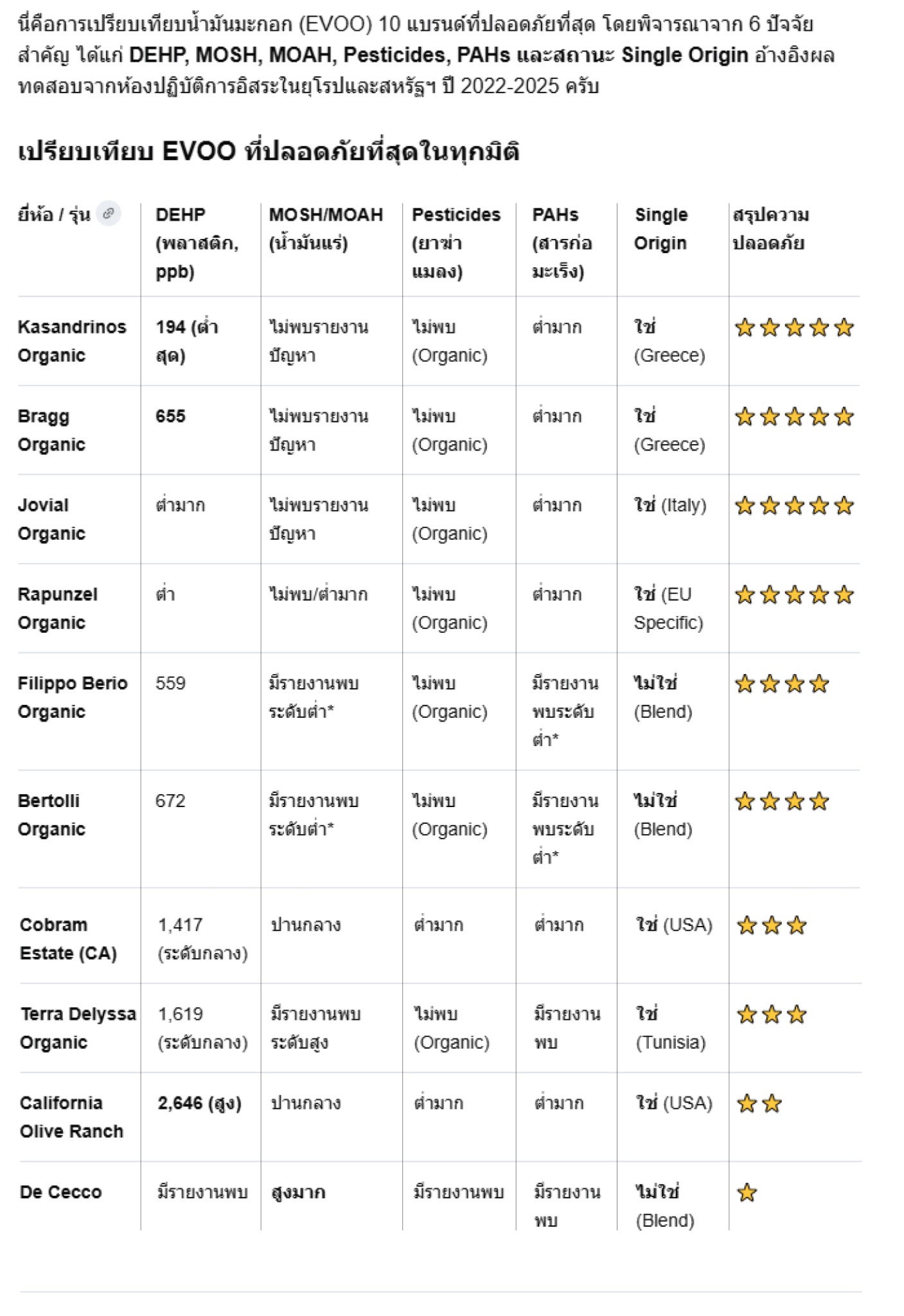เท่าที่หาข้อมูลมา เรื่องประเด็นปัญหาของน้ำมันมะกอก extra virgin (หรือเรียกสั้นๆ ว่า EVOO)
