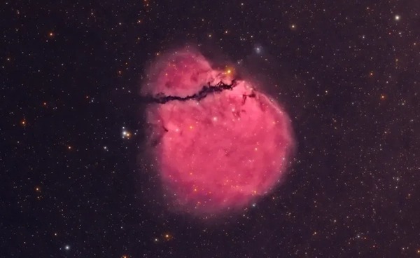 เนบิวลาเปล่งแสงสีแดงสดใสในกลุ่มดาวท้ายเรือที่อยู่ห่างจากโลกถึง 6,000 ปีแสง