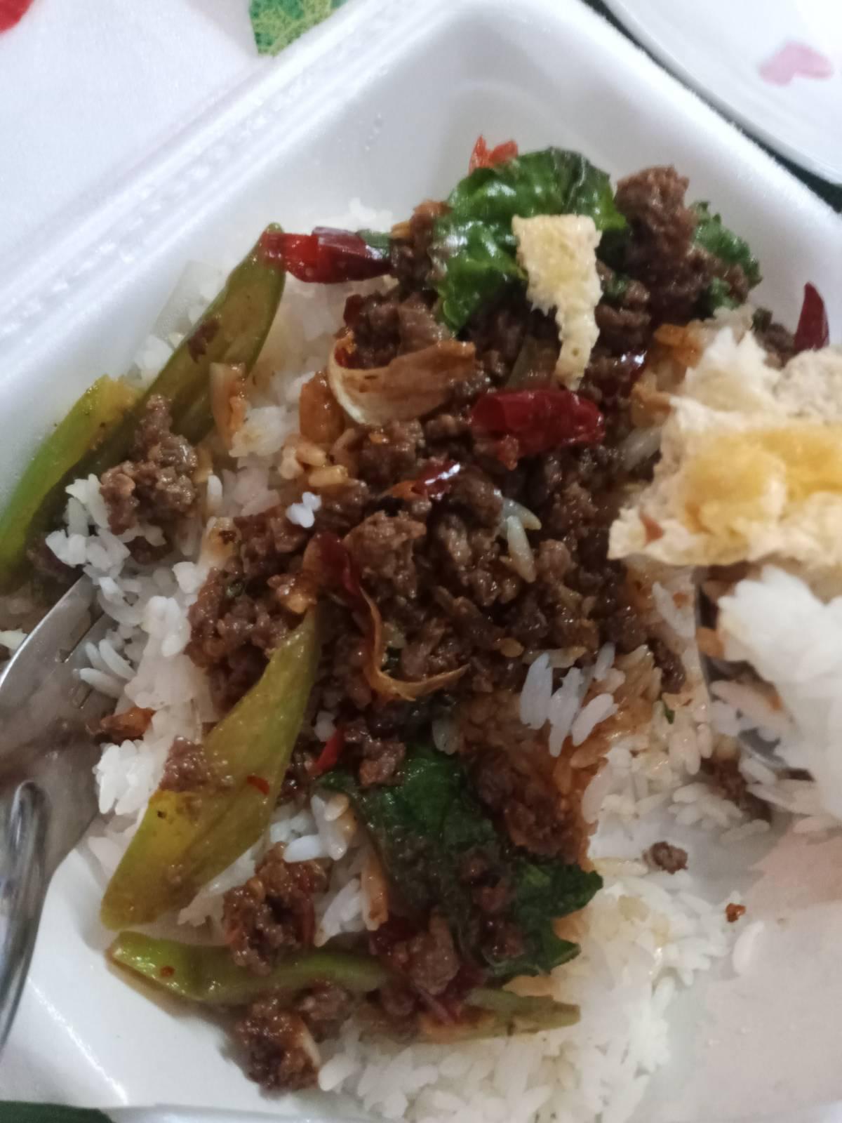 ข้าวกะเพราเนื้อ + ไข่เจียว