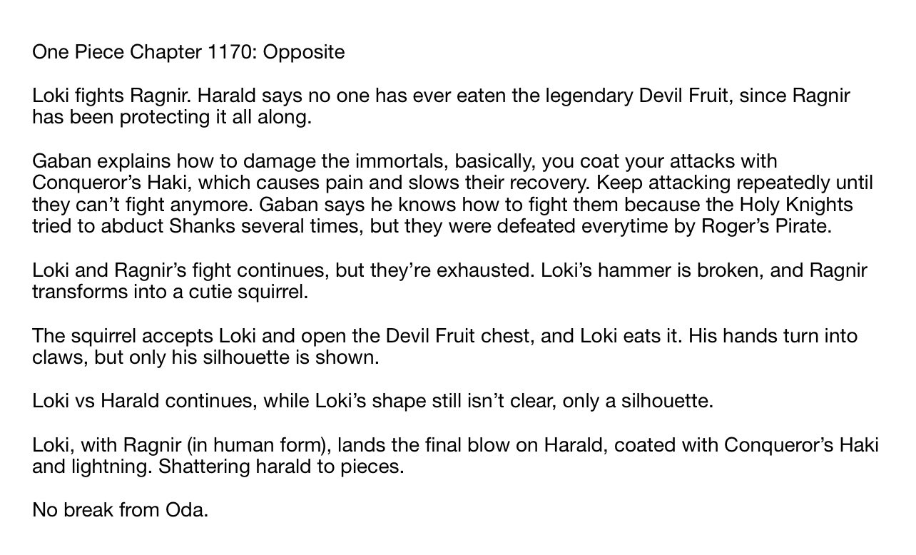 -ผลการต่อสู้โลกิสร้างความเสียหายให้กับร่างอมตะของฮาราลด์ได้ ด้วยฮาคิ ราชันย์ และ ทำให้ฮาราลด์ตัวแตก