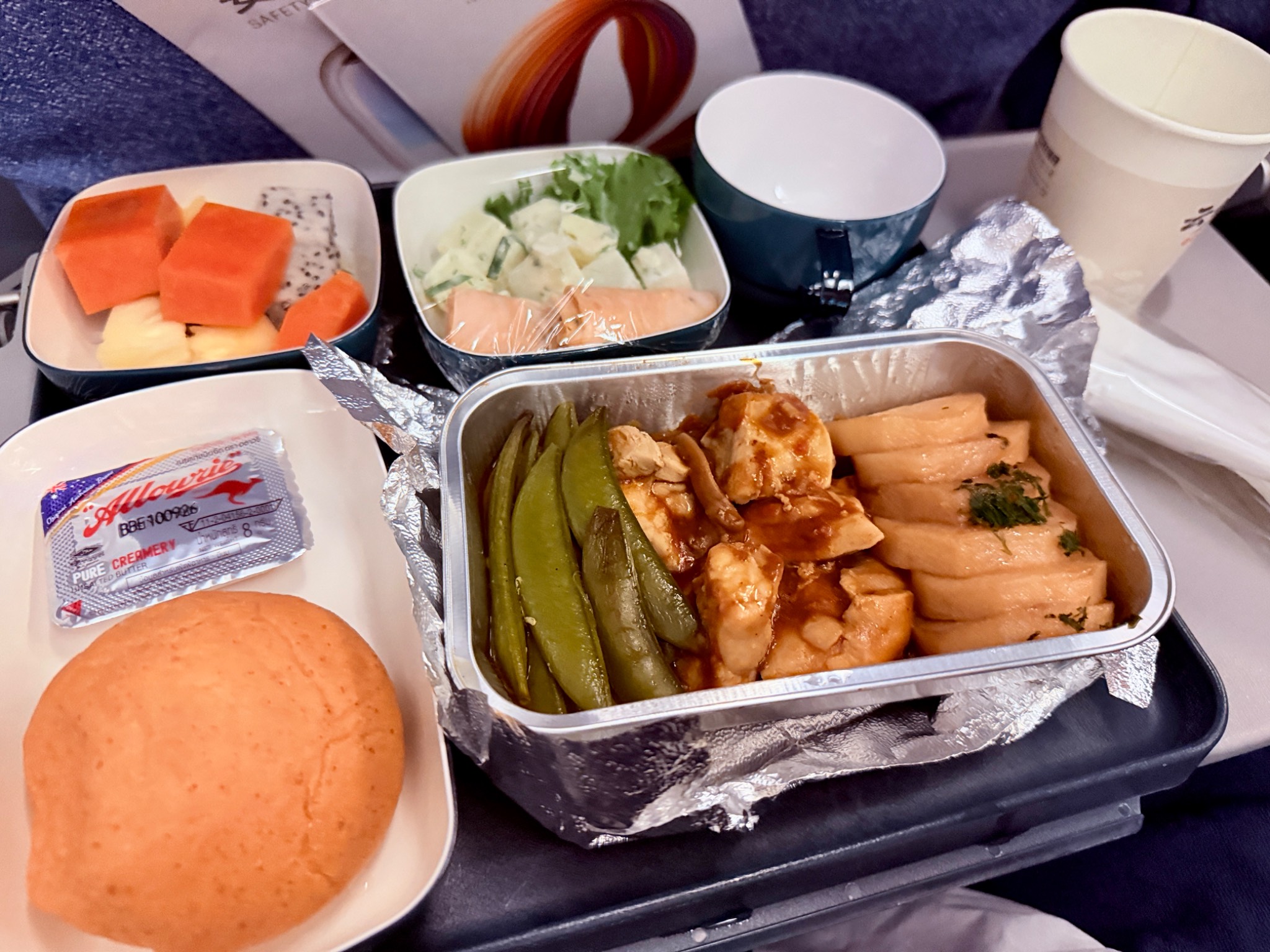 20.00 น. พนักงานเดินเสริฟอาหารบนเครื่อง รสชาติพอกินได้