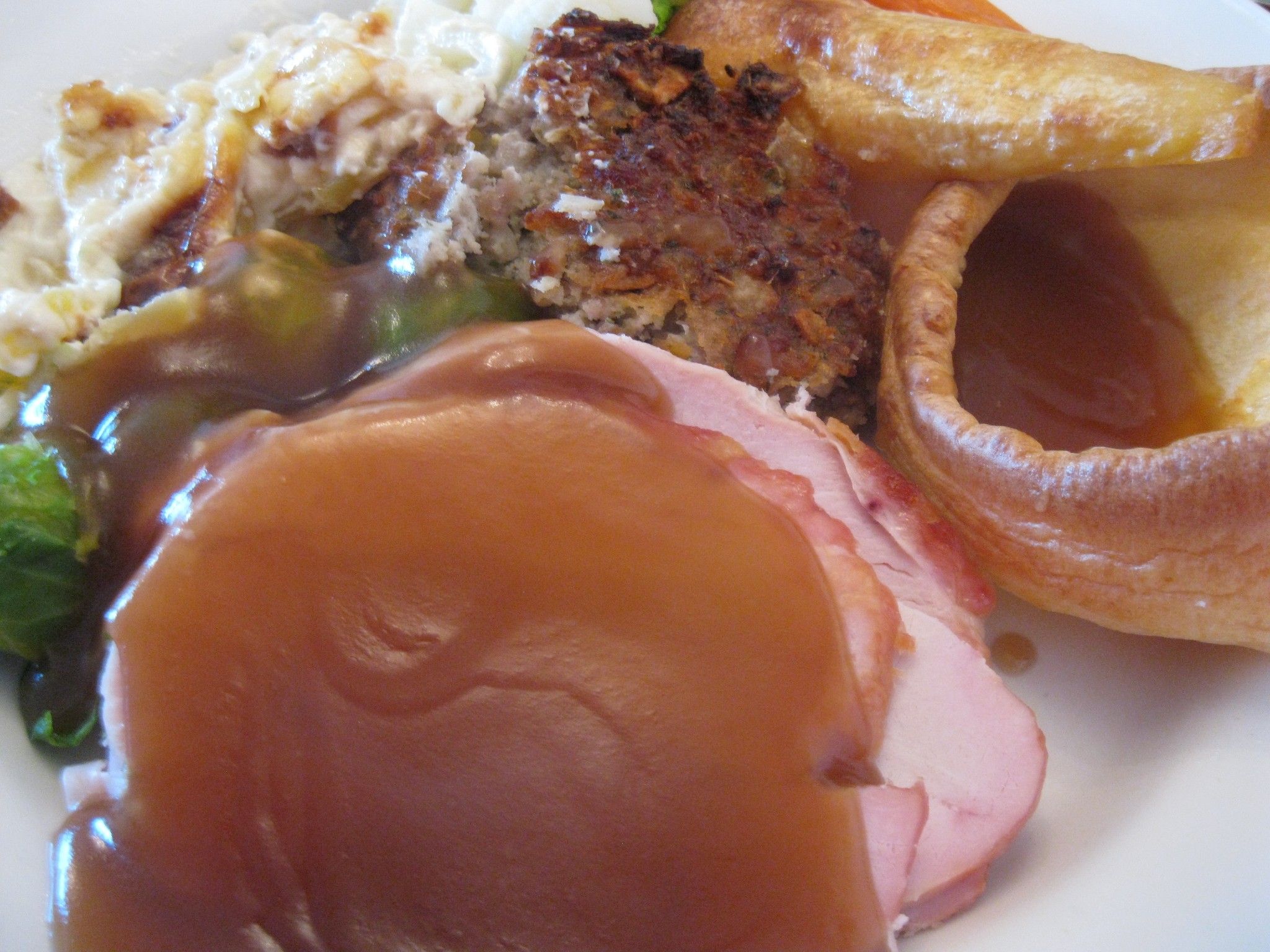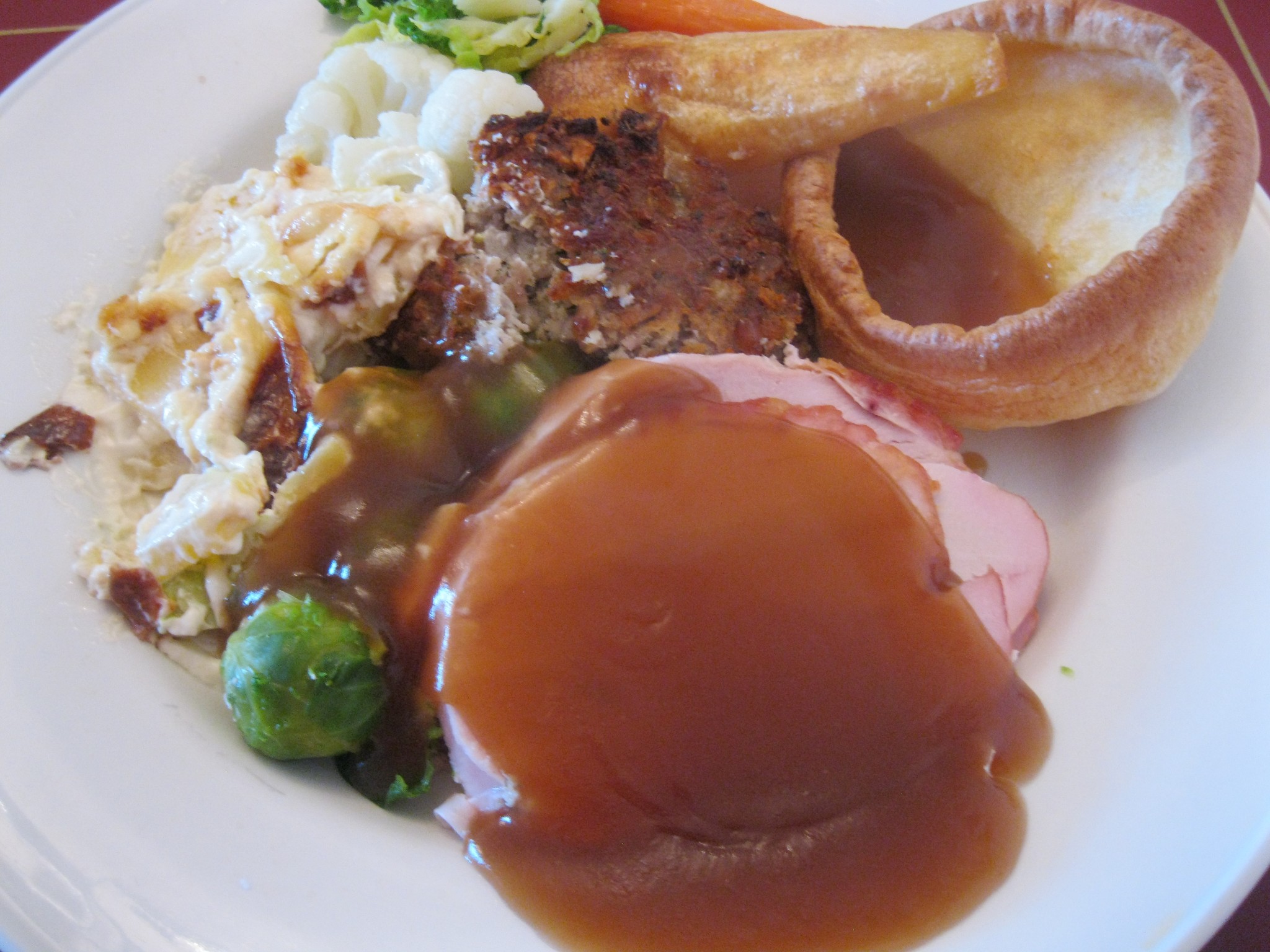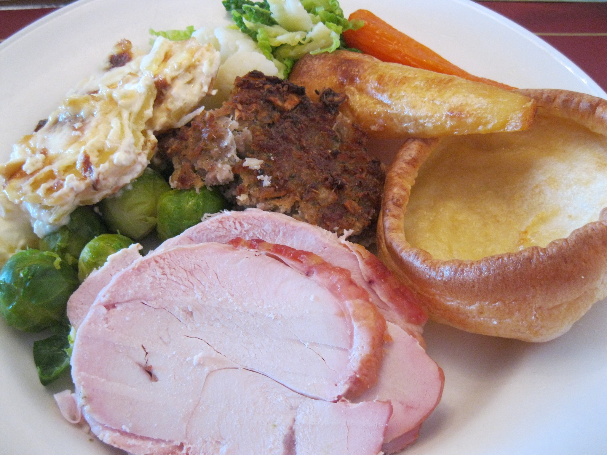 พาร์สนิป(Parsnips) สตัฟฟิง (Stuffing with sausage meat) Dauphinoise potatoes และยอร์กเชอร์พุดดิง (Yorkshire Pudding)