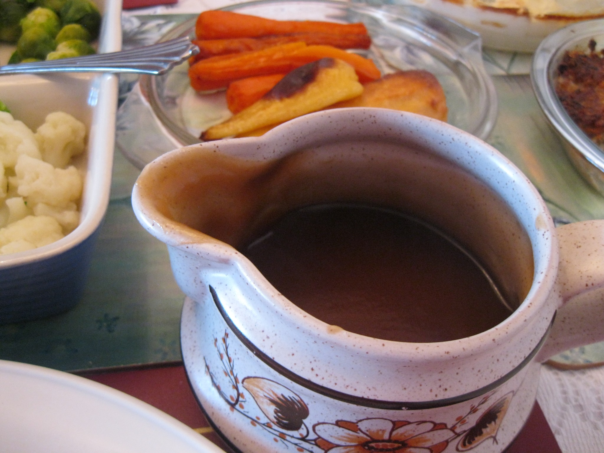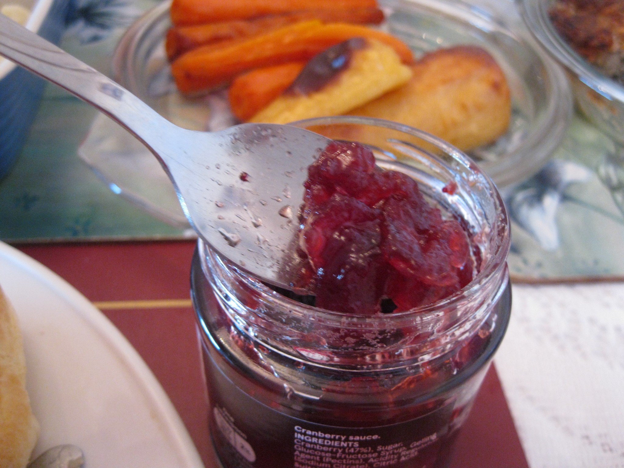 ราดด้วยน้ำน้ําเกรวี่ กินคู่กับแครนเบอรี่ซอส (Cranberry Sauce)