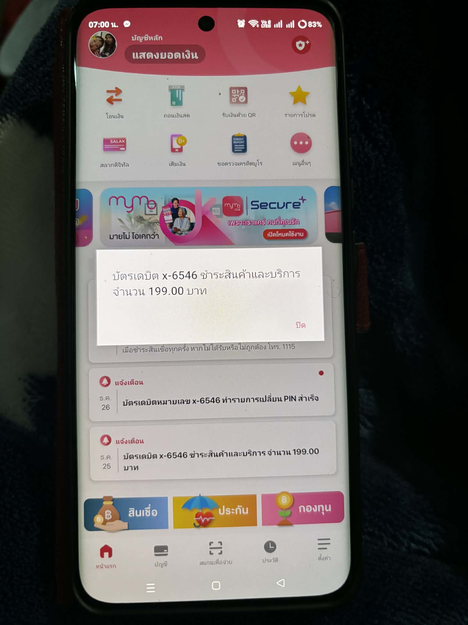เอางี้เลยนะคะ เช็คทุกเครื่องในบ้านแล้ว ไม่พบว่า หักเงิน ค่าอะไรของฉัน 199 บาทตอน 4ทุ่มเกือบ 5ทุ่ม คือหลับไปแล้วอะ ตื่นมาตอนตี1 จ้ะเอ๋ 199 บาทโดนหักผ่านบัตรเดบิต แล้วเวลาเราจะซื้ออะไร เราจะหักผ่านซิมเท่านั่นเด้อ บ่ได้หักผ่านออมสินเด้อ มีอันนึ่งหักผ่านช้อปปี้ 49 บาท มันไม่มีปัญหาเลยเด้อ แต่อันนี้ 199 ดู ขึ้นแค่หักผ่านบัตรเดบิตไม่บอกเดะว่าหักค่าอะไร!!!!