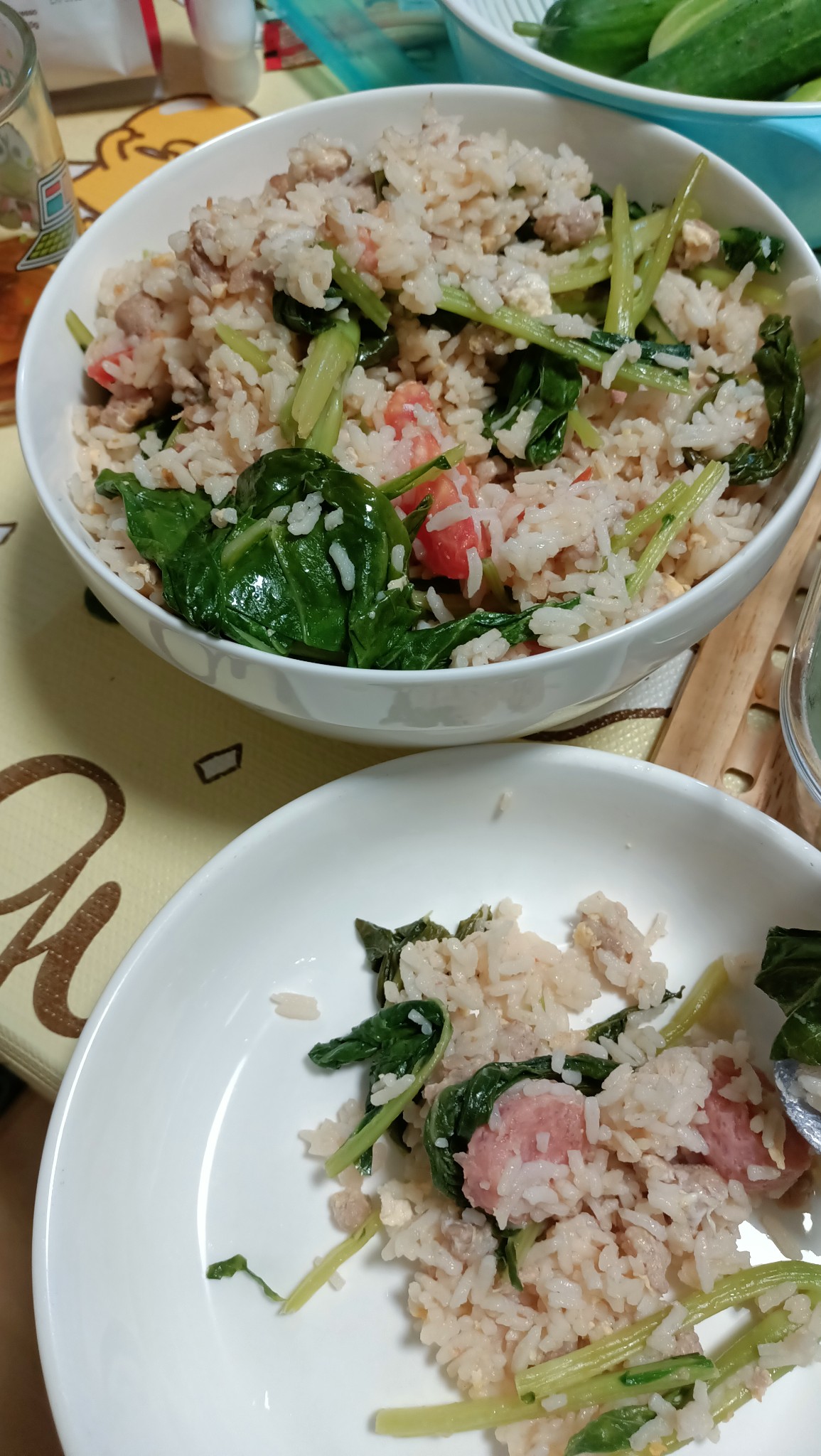 เมื่อวานกลับมาบ้านเจอเมียทำข้าวผัดแหนมให้กินครับ ชามยักษ์เลย