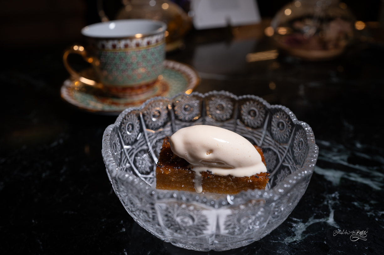 ปิดท้ายด้วยขนมหวานที่ดัดแปลงจากตำรับ ท้าวทองกีบม้า (Maria Guyomar de Pinha) สมัยพระนารายณ์มหาราช จานซิกเนเจอร์ของร้านและอยู่มาตั้งแต่เปิดร้านโดยไม่เคยเปลี่ยน เค้กหม้อแกงเนื้อแน่นท็อปด้วยน้ำตาลไหม้กรอบบางๆ (Brûlée) เสิร์ฟคู่กับไอศกรีมรสหอมเจียวที่เกิดจากความบังเอิญ และข้าวเหนียวมูนกะทิ อร่อยเข้าใจง่าย หวานมันกลมกล่อม
