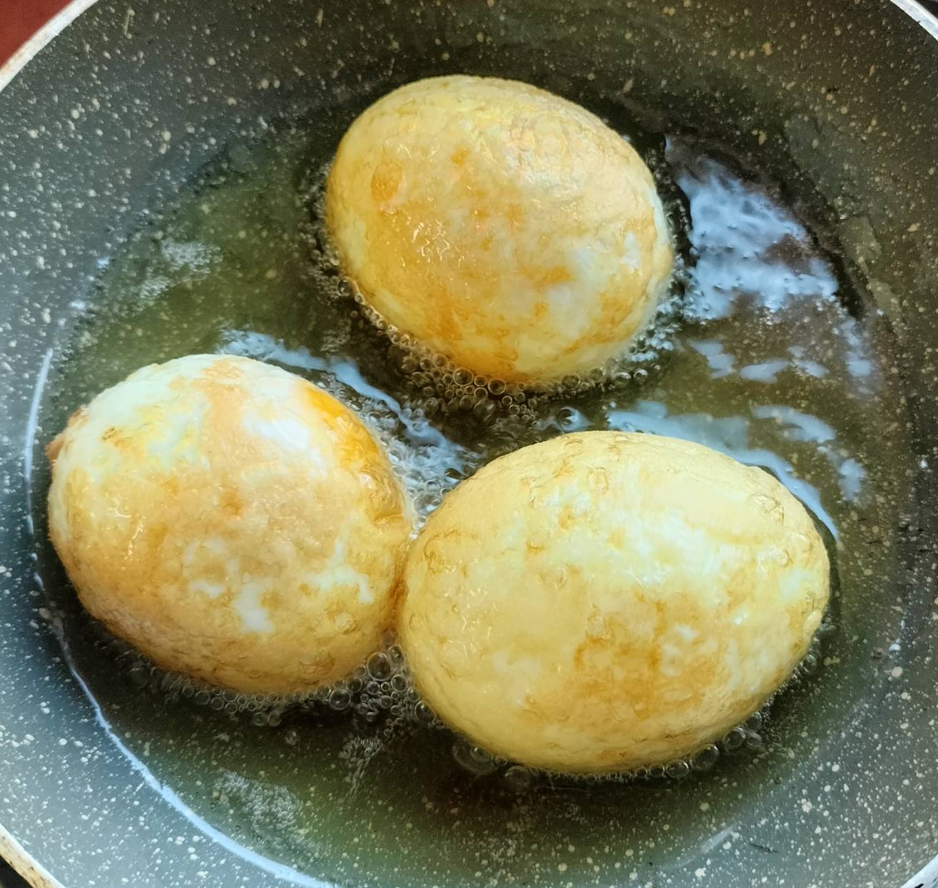 มีไข่ต้ม ก็จับมาทอดให้ผิวพองเหลืองสวย