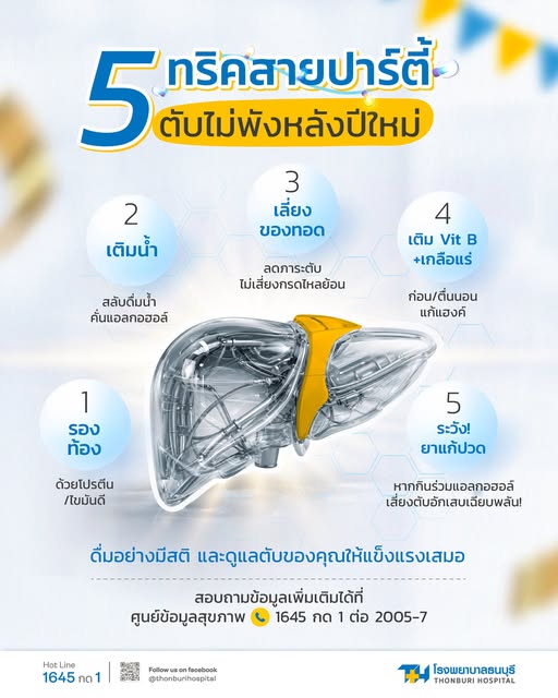 วันนี้พี่หมอฝั่งธน..จะมาให้ความรู้  idea ช่วงเทศกาลนี้ สายปาร์ตี้ อย่าลืมดูแลสุขภาพตับกับ “5 ทริค  สายปาร์ตี้ ตับไม่พังหลังปีใหม่” idea