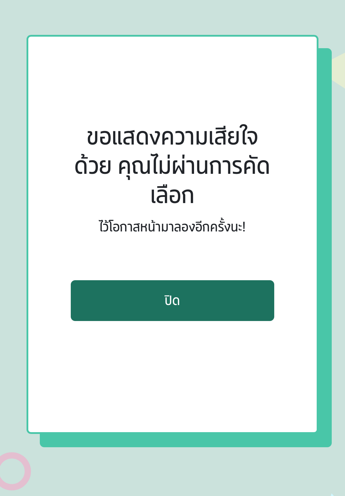 ถามว่าเสียเซลฟ์ไหม มากค่ะ โอ้ยยย เสียใจมากค่ะ แต่ไม่กล้าบอกใคร กลัวคนอื่นล้อ ไว้เจอกันรอบหน้านะคะ🥹🫶🏻 ( หรือหน้าตาหนูอาจจะไม่ตรงไทป์+แก่แล้ว) รุ่น 7 มาต่อได้เลยค่ะ 😭😭🥹 ขอแสดงความยินดีกับคนที่ผ่านนะคะ เก่งมากกก