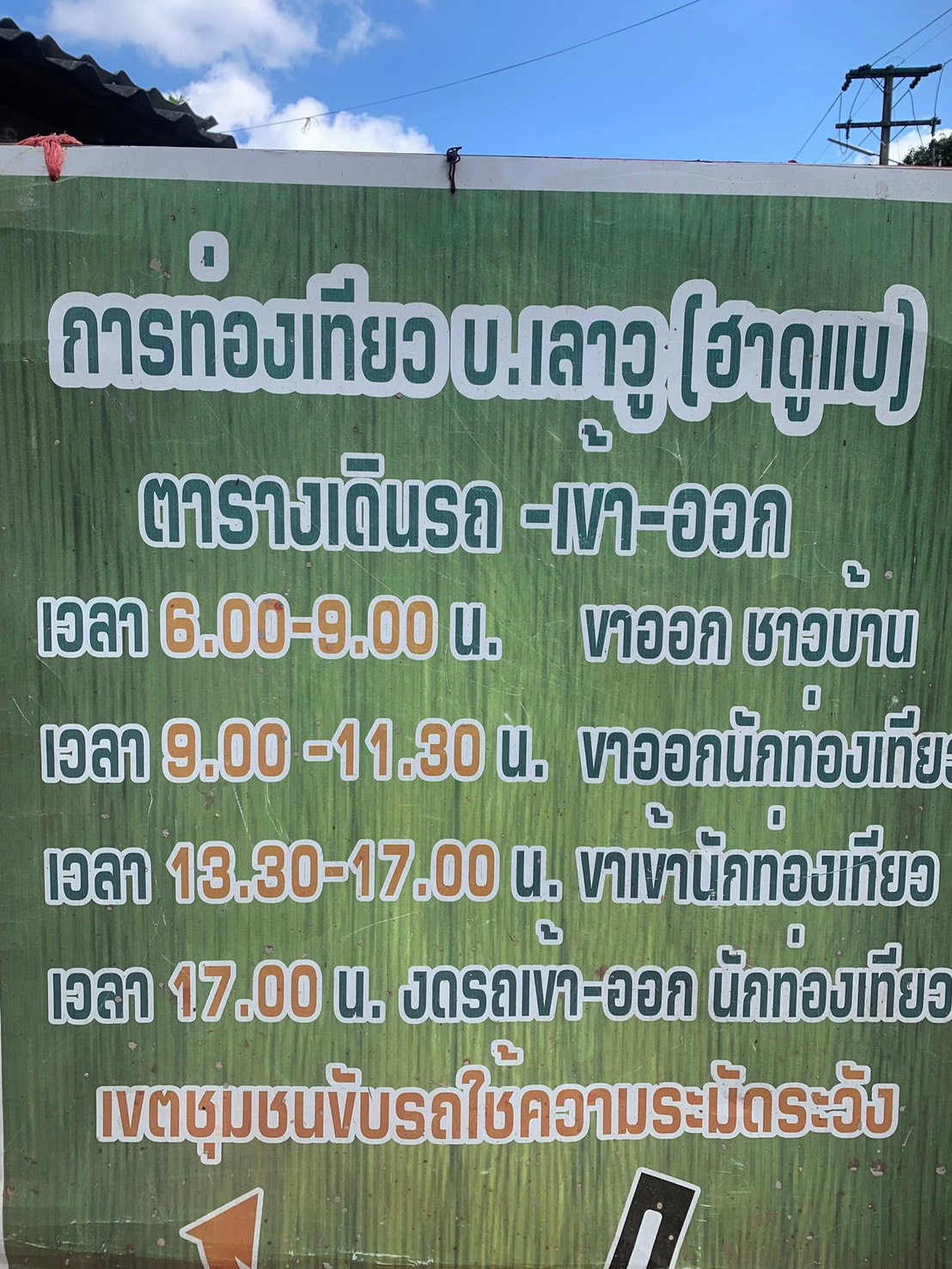 เวลาขึ้นลง เพราะทางเข้าหมู่บ้านแคบมากและสูงชัน รถสวนไม่ได้ในบางช่วง (แต่ก็ไม่ได้เคร่งขนาดนั้น เข้าได้เรื่อยๆ แต่ต้องบอกชาวบ้านให้ดูทางให้ด้วย) แต่ถ้าให้ดีเข้าตามเวลาจะดีจะมีชาวบ้านค่อยดูทางให้