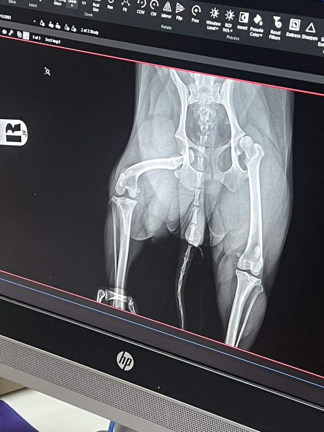 เนื่องจากน้องหมาไม่สบาย ไม่กินข้าวมา 2 วัน ก็เลยพาไปหาหมอที่รพ.เอกชนแห่งหนึ่ง หมอก็เจาะเลือดเพื่อไปตรวจและเอ็กซ์เรย์ช่องท้อง แต่ไม่รู้จับน้องหมากดกันยังไง น้องหมากระดูกสะโพกหลุด ตอนแรกหมอก็ปฏิเสธ บอกว