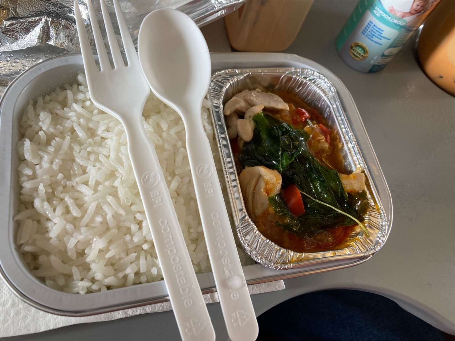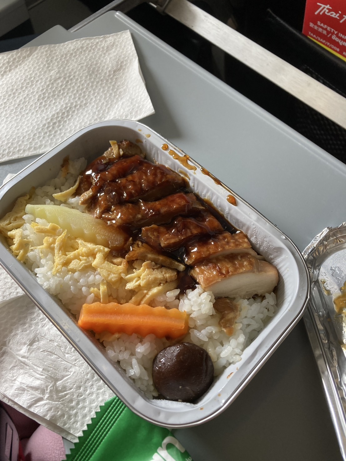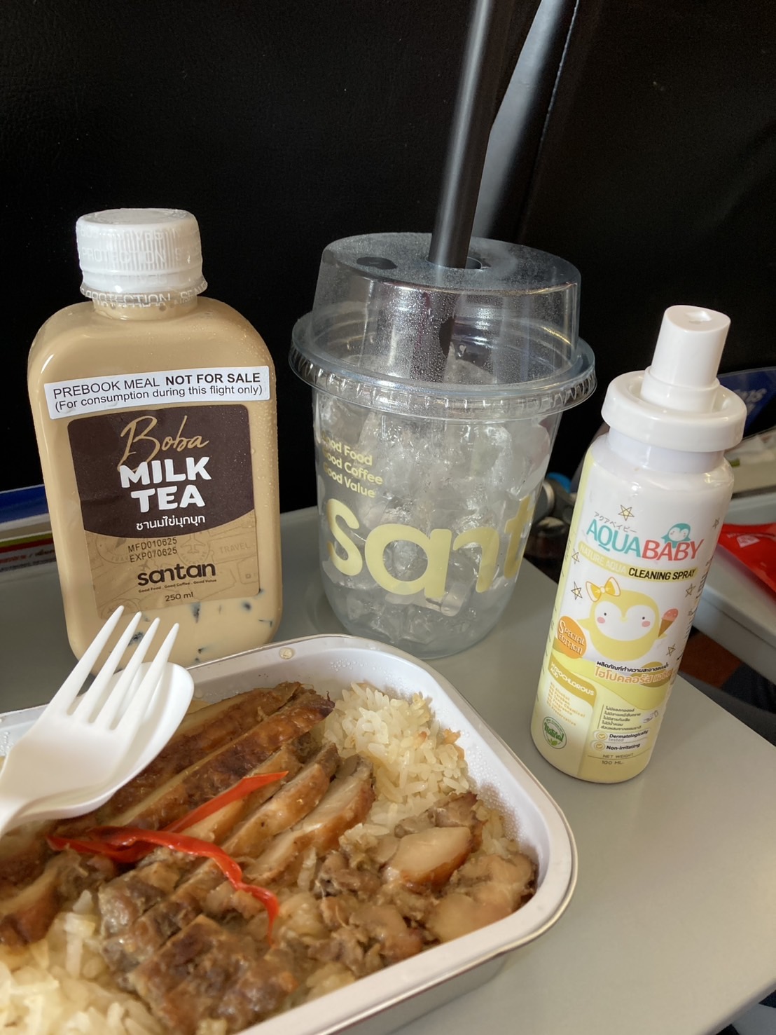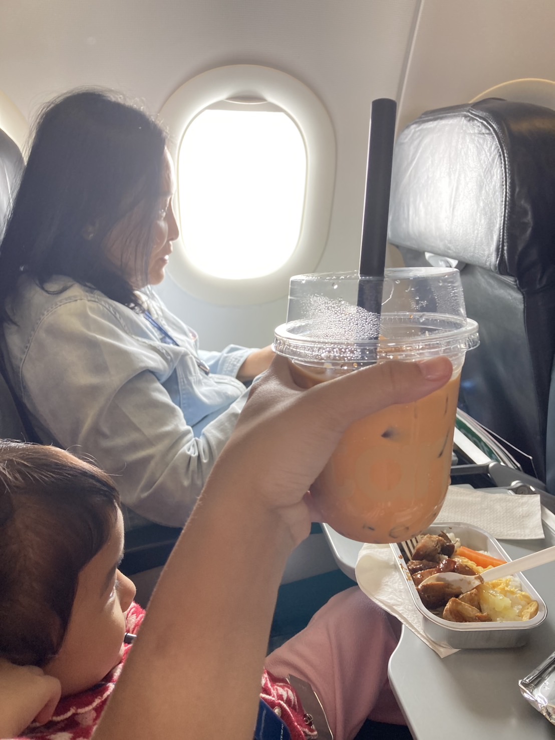 อาหารบนเครื่อง "ข้าวมันไก่" เค็มมากเด็กไม่กินเลย ส่วนชานมไข่มุกแม่ก็อร่อยมากเหมือนเดิมมมมมม