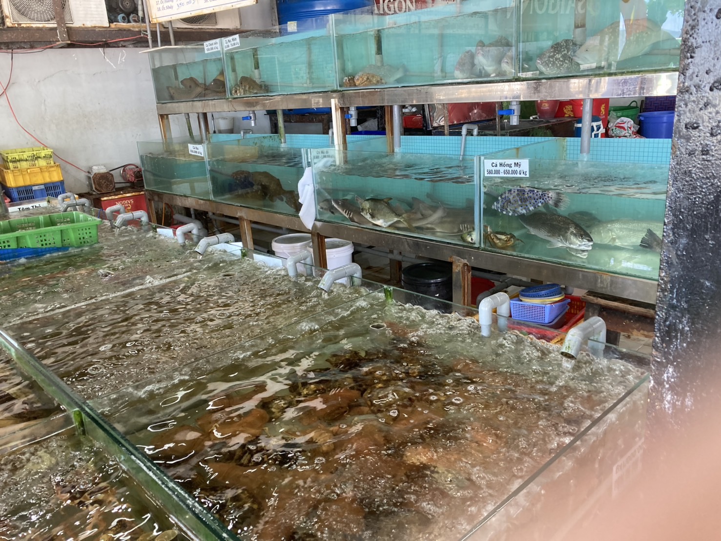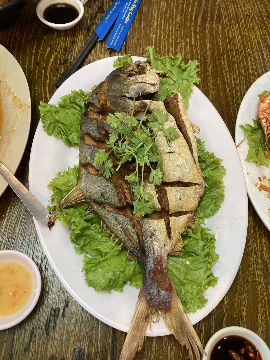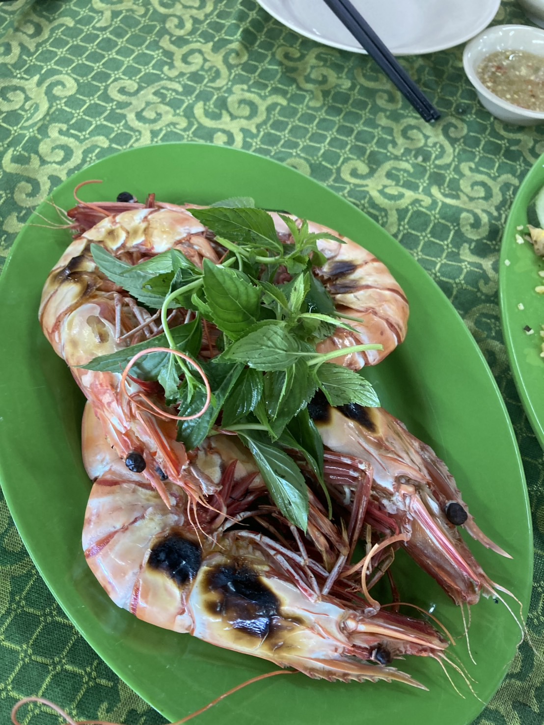 ไปถึงแล้วลงเครื่องเรียบร้อย ร้านแรกมื้อกลางวันที่ไปกินอยุ่ริมทะเล อาหารค่อนข้างสด เพราะเขายังบ่ตุย