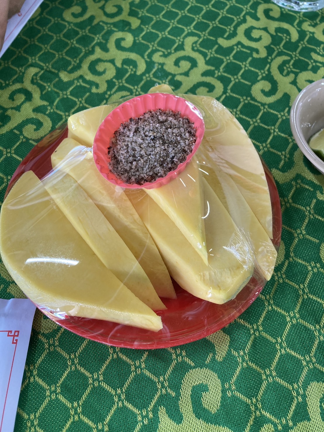 มานั่งปุ้ปเสริฟ์มะม่วงก่อนเลย ให้ฟรีมา มีน้ำจิ้มด้วย เกลือตำกับอะไรสักอย่าง