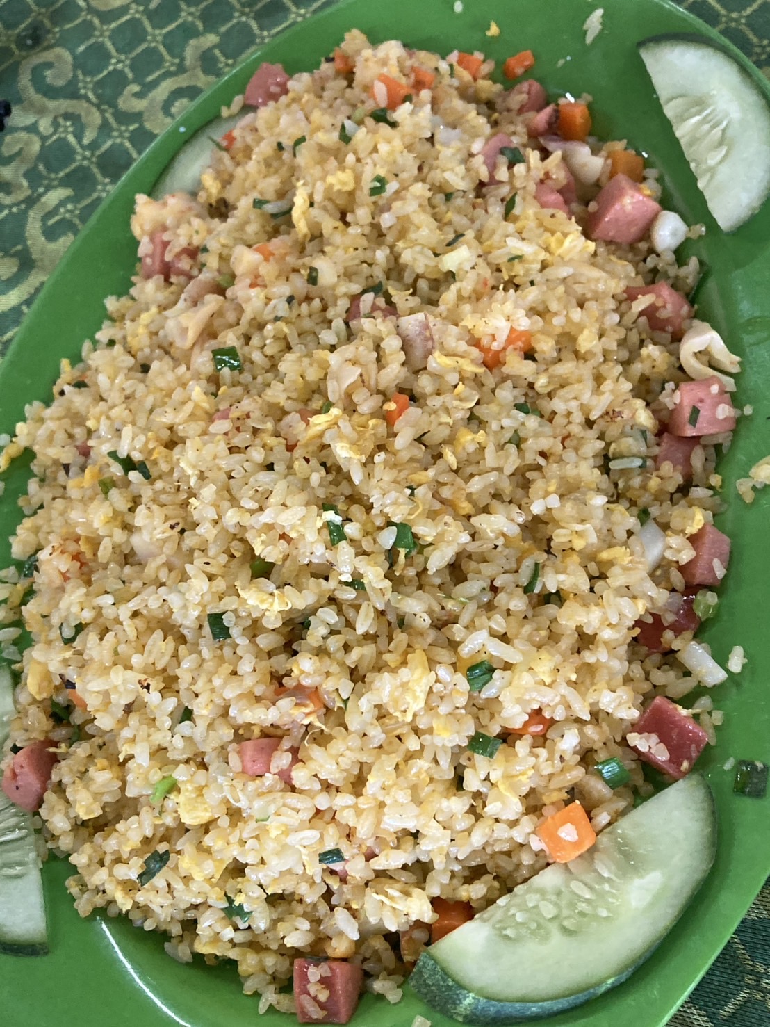 "ข้าวผัดทรงเครื่อง" สั่งมาให้เด็กทาน อร่อยอยู่ค่ะ ใส่ปลาหมึกไส้กรอก ข้าวหนึบดี
