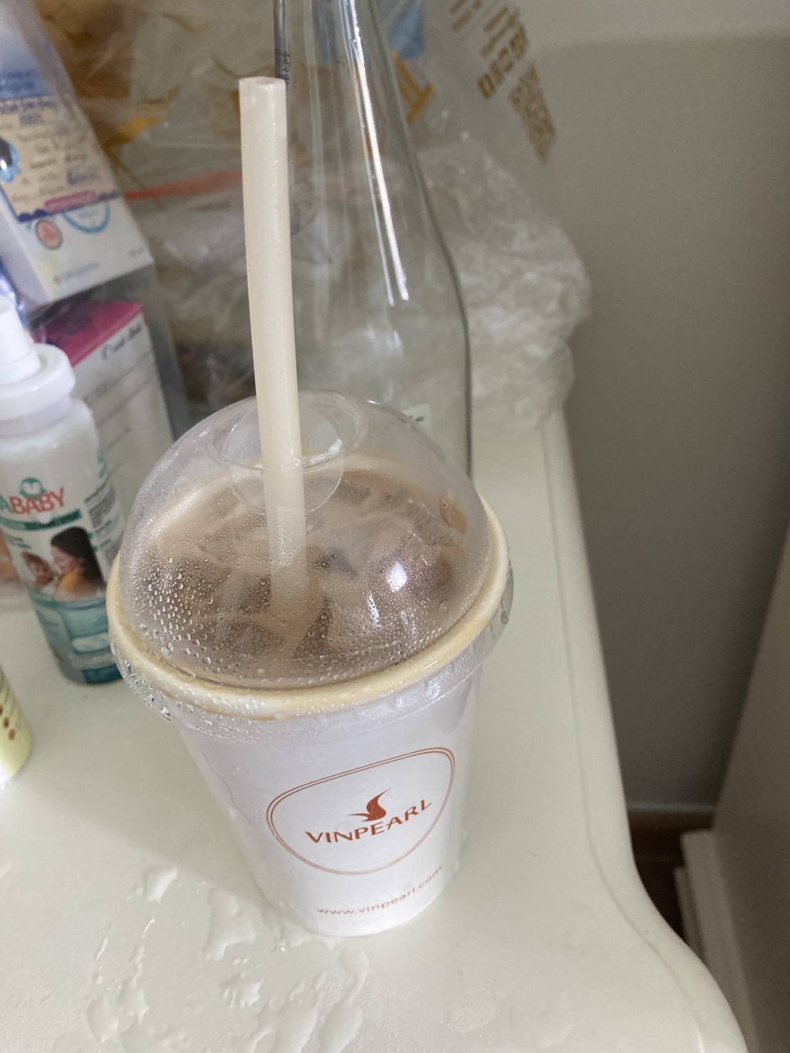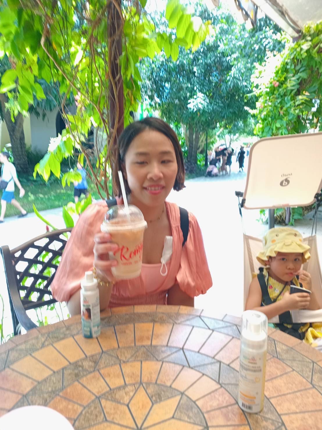 ยังไม่ทันไร...เดินไปครึ่งทางร้อนจะตายเดินไม่ไหวต้องนั่งพัก เจอร้านกาแฟ รีบซื้อไอติมให้ลูกกินเลย ไอติมอร่อยดี กาแฟเฉยๆ