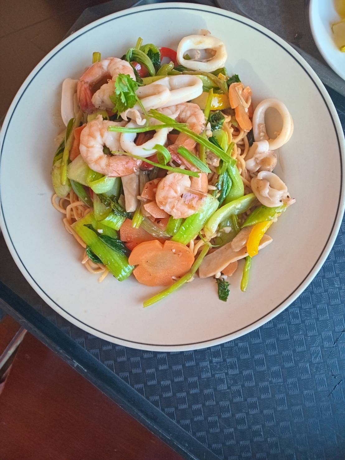 ส่วนอีกเมนูคือ "หมี่ผัดซีฟู้ด" ให้เครื่องเยอะมาก เส้นก็อร่อย
