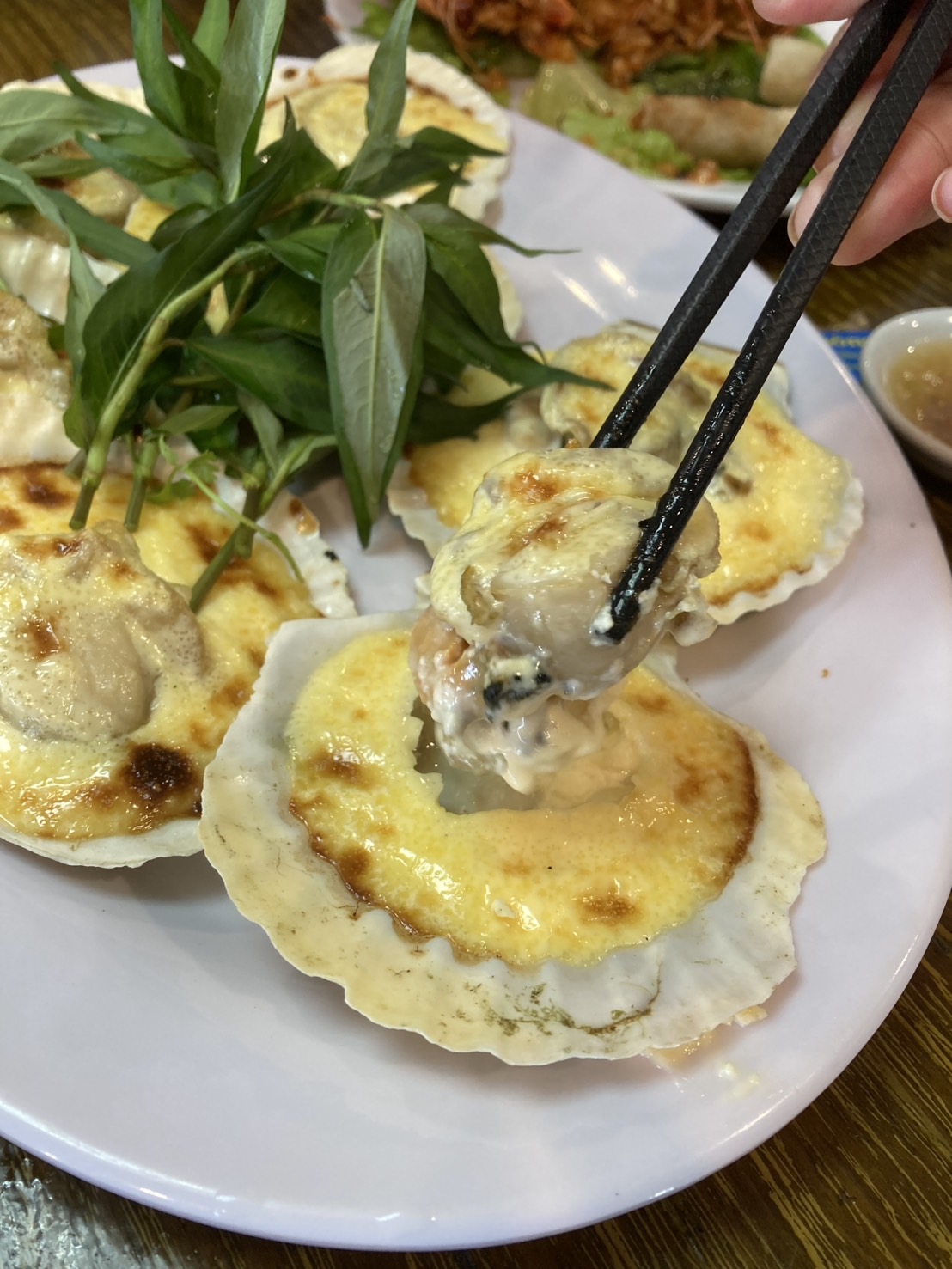 "หอนนางรมเผา" ก็อร่อย เมนูหอยเขาจะใส่ถั่วมาด้วยทุกอัน อร่อยสดมาก