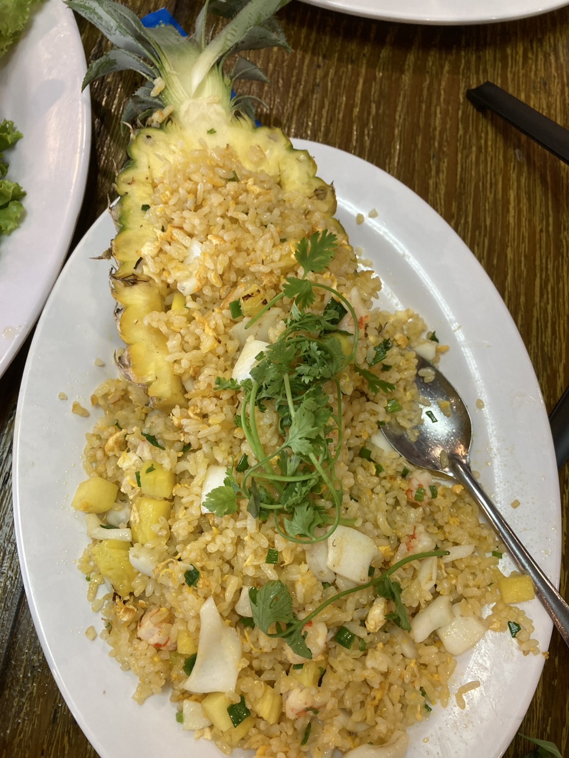 ส่วนอันนี้เด็กๆชอบกันมาก "ข้าวผัดสับปะรดใส่กุ้งกับปลาหมึก"