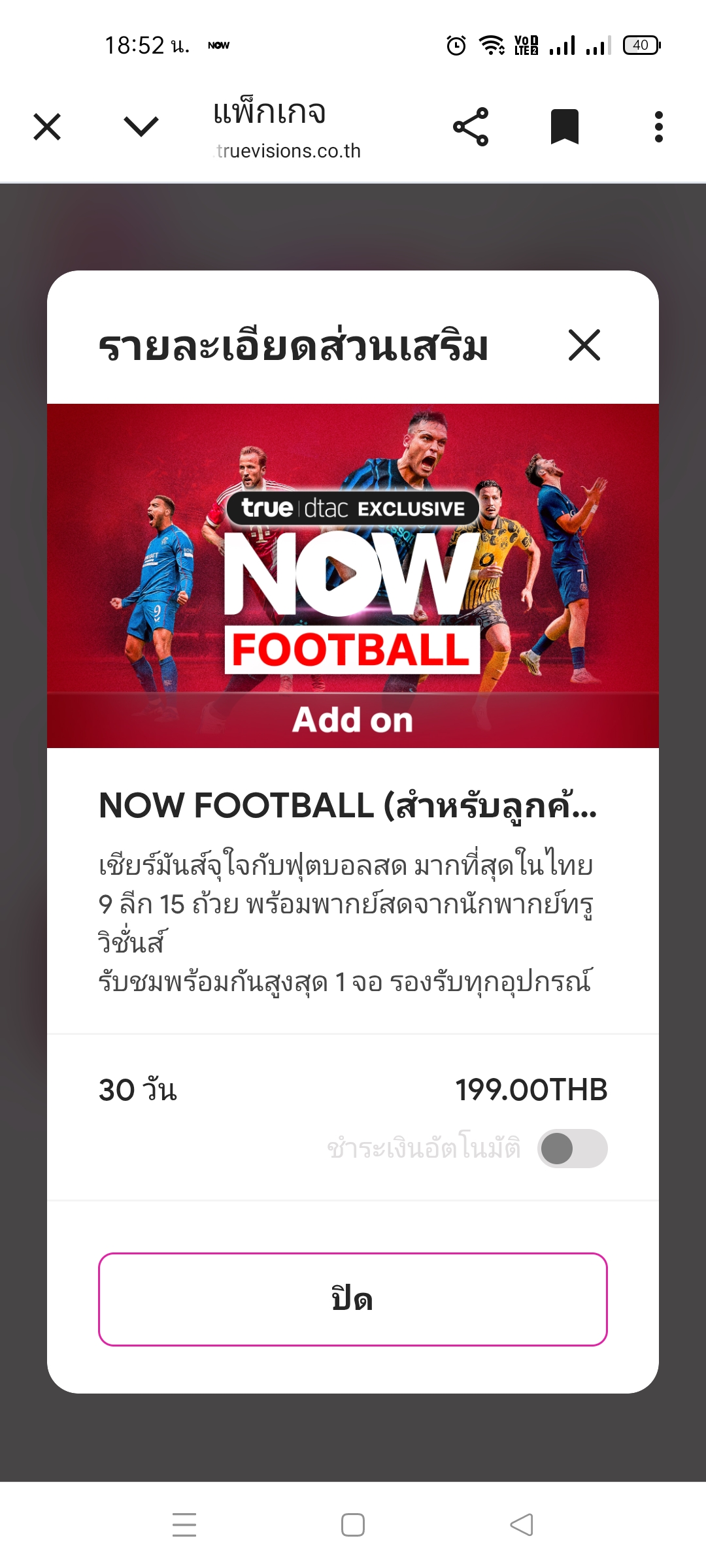 สมัครทรูวิชั่นนาว Now football แบบนี้ จะเรียกเก็บเงินทุกเดือนรึเปล่า