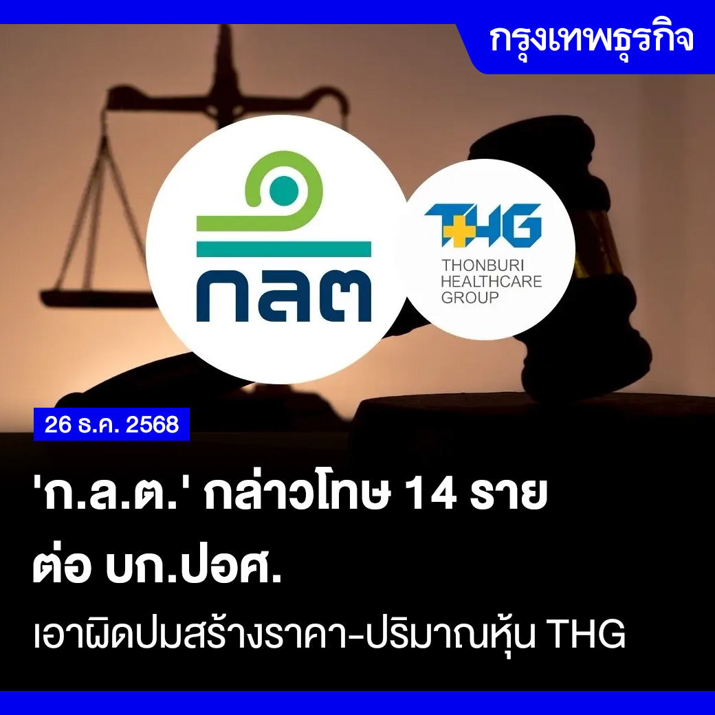 ก.ล.ต. กล่าวโทษ 14 ราย ต่อ บก.ปอศ. เอาผิดปมสร้างราคา-ปริมาณหุ้น THG