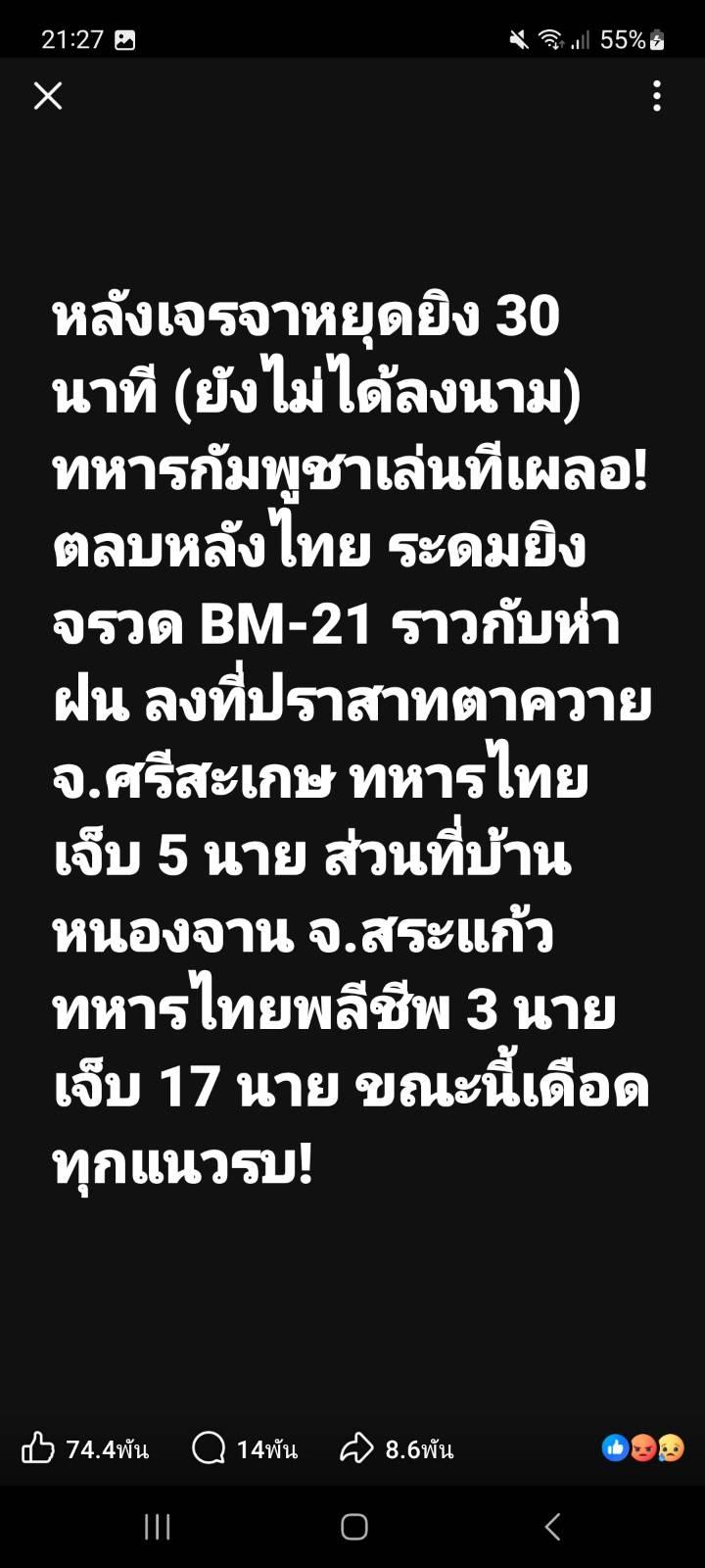 คลิปหลักฐานมัดแน่น! กัมพูชาใช้หมู่บ้านบังฐานยิง BM-21https://www.pptvhd36.com/news/สังคม/264267. .คลิปหลักฐานมัดแน่น! กัมพูชาใช้หมู่บ้านบังฐานยิง BM-21 ละเมิดกฎหมายมนุษยธรรม เดินหน้าประท้วงนานาชาติ.ศู