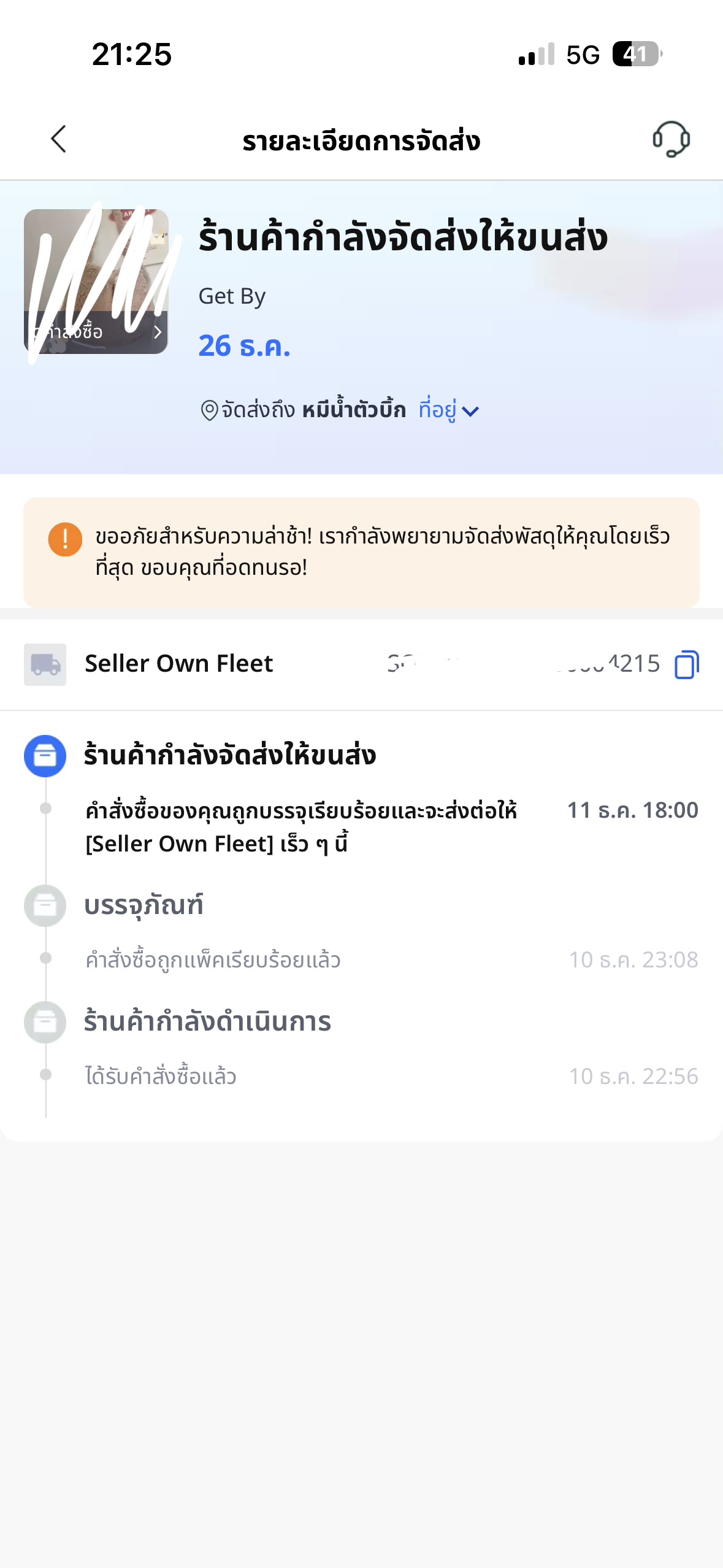 เช็คพัสดุจาก Seller_own_fleet ยังไงคะ
