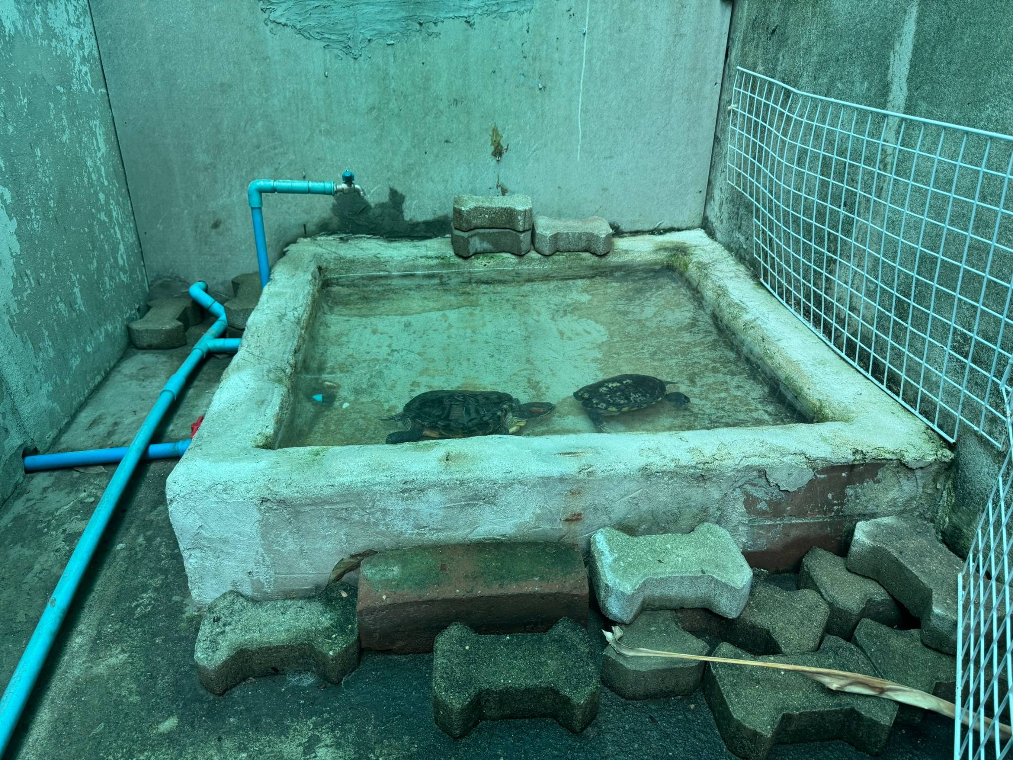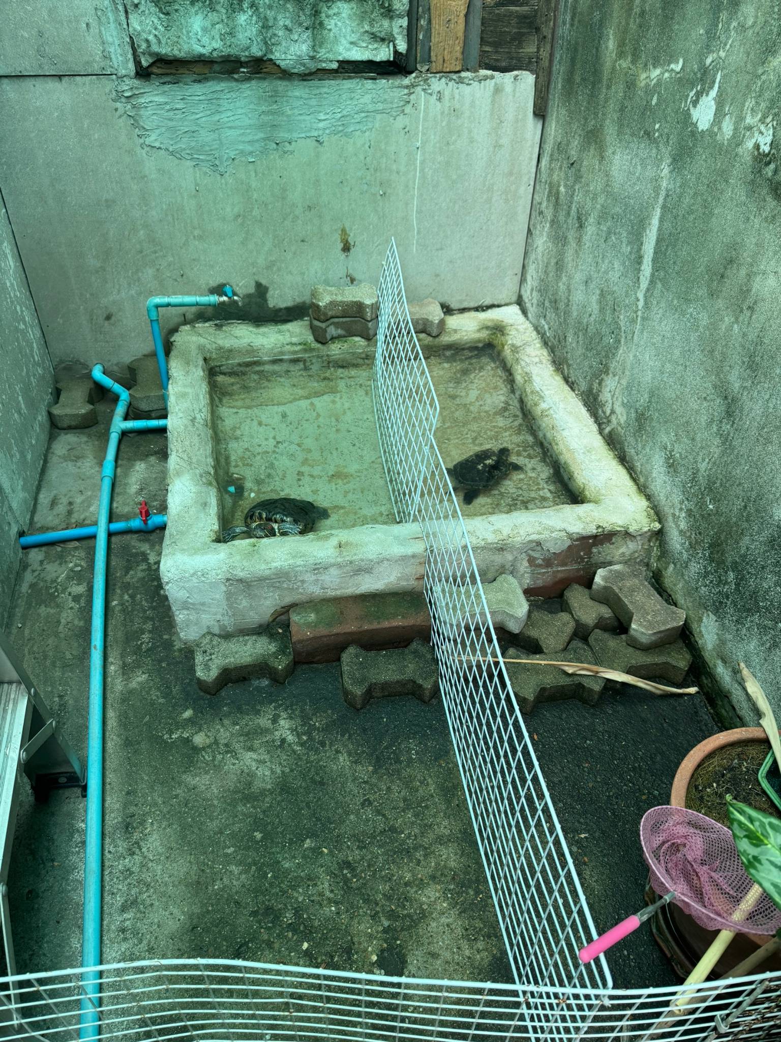- บ่อเต่าอยุ่หลังบ้าน มีแดดส่องช่วงประมาณ11โมงถึงเที่ยง น้องชอบขึ้นมาบนขอบบ่อ ตากแดด