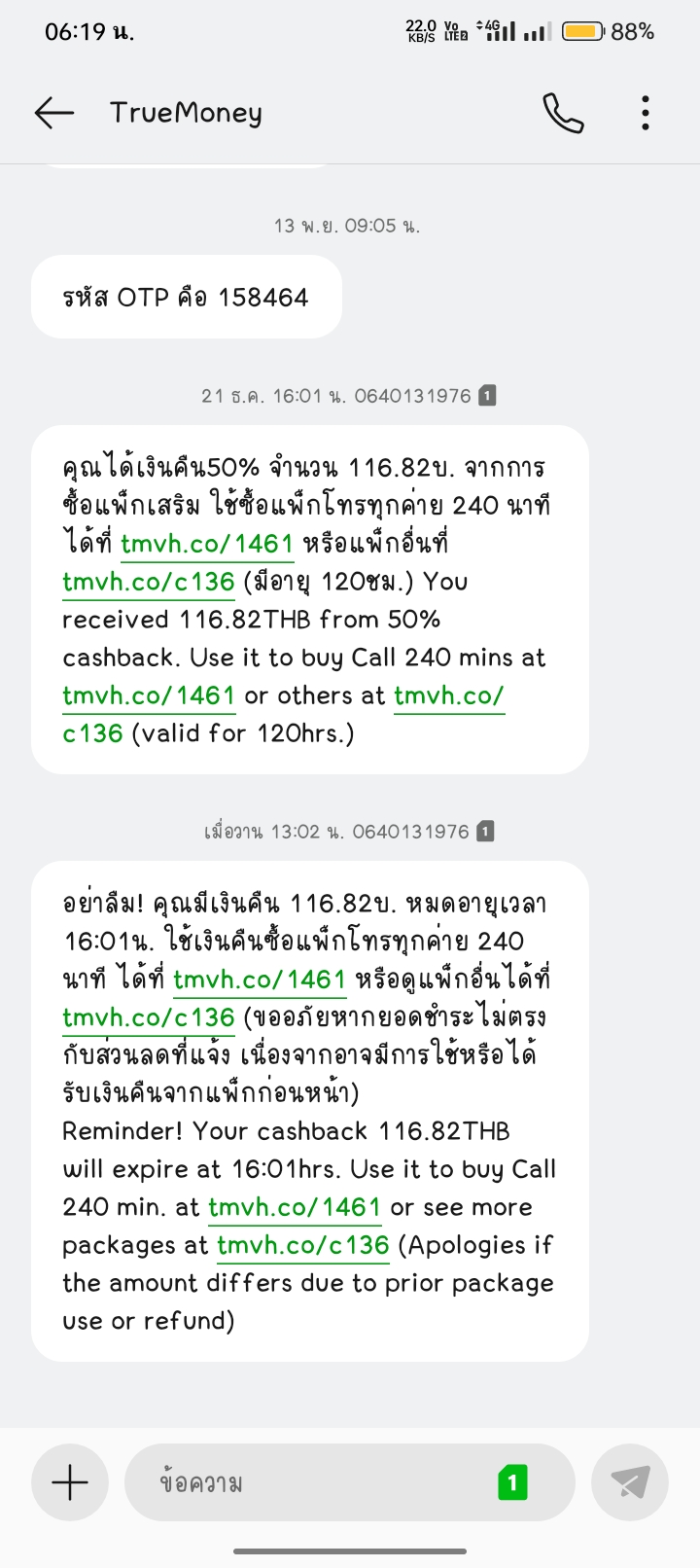 ได้รับเงินคืนจากtruemonny แต่กดเข้าไปเป็นชำระเงิน