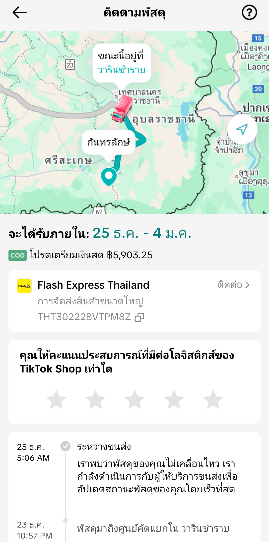Flash สาขา 20 NE6_HUB-บุรีรัมย์ ไม่อัพเดทสถานะเลย ปกติจัดส่งเร็วกว่านี้ นี่เกิน24ชม.แล้ว