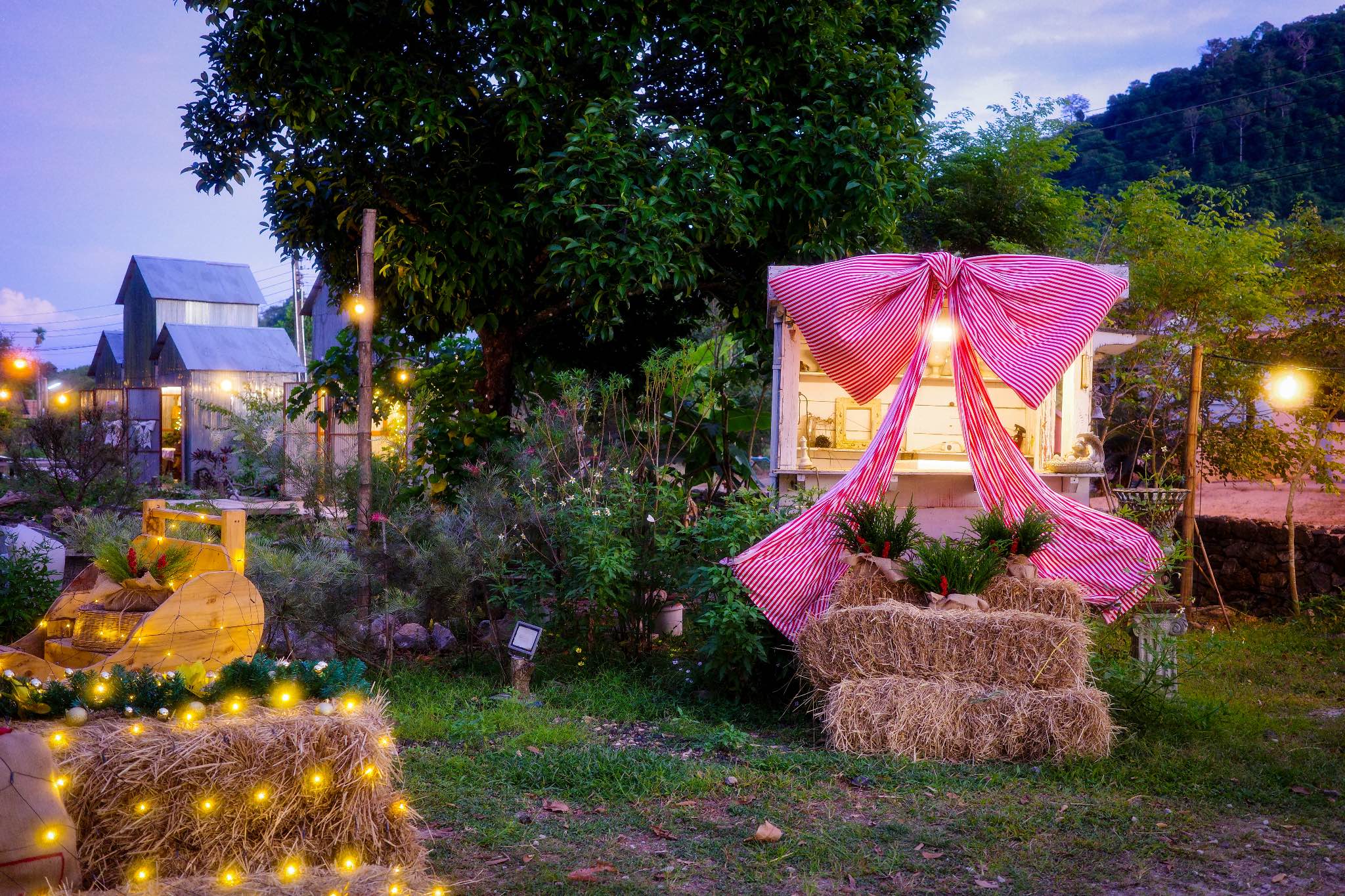 𝐏𝐚𝐝𝐞𝐞 𝐢𝐧 𝐭𝐡𝐞 𝐰𝐢𝐥𝐝 𝐌𝐞𝐫𝐫𝐲 𝐂𝐡𝐫𝐢𝐬𝐭𝐦𝐚𝐬 𝐓𝐡𝐞𝐦𝐞 🧑🏻🎄 ร้านปาฎีปีนี้โซน Outdoor โดดเด่นด้วยต้นคริสต์มาสขนาดใหญ่ตกแต่งด้วยโบว์สีแดงเต็มต้นตั้งอยู่ในลานกว้างคู่กับกองฟาง ไว้ให้น