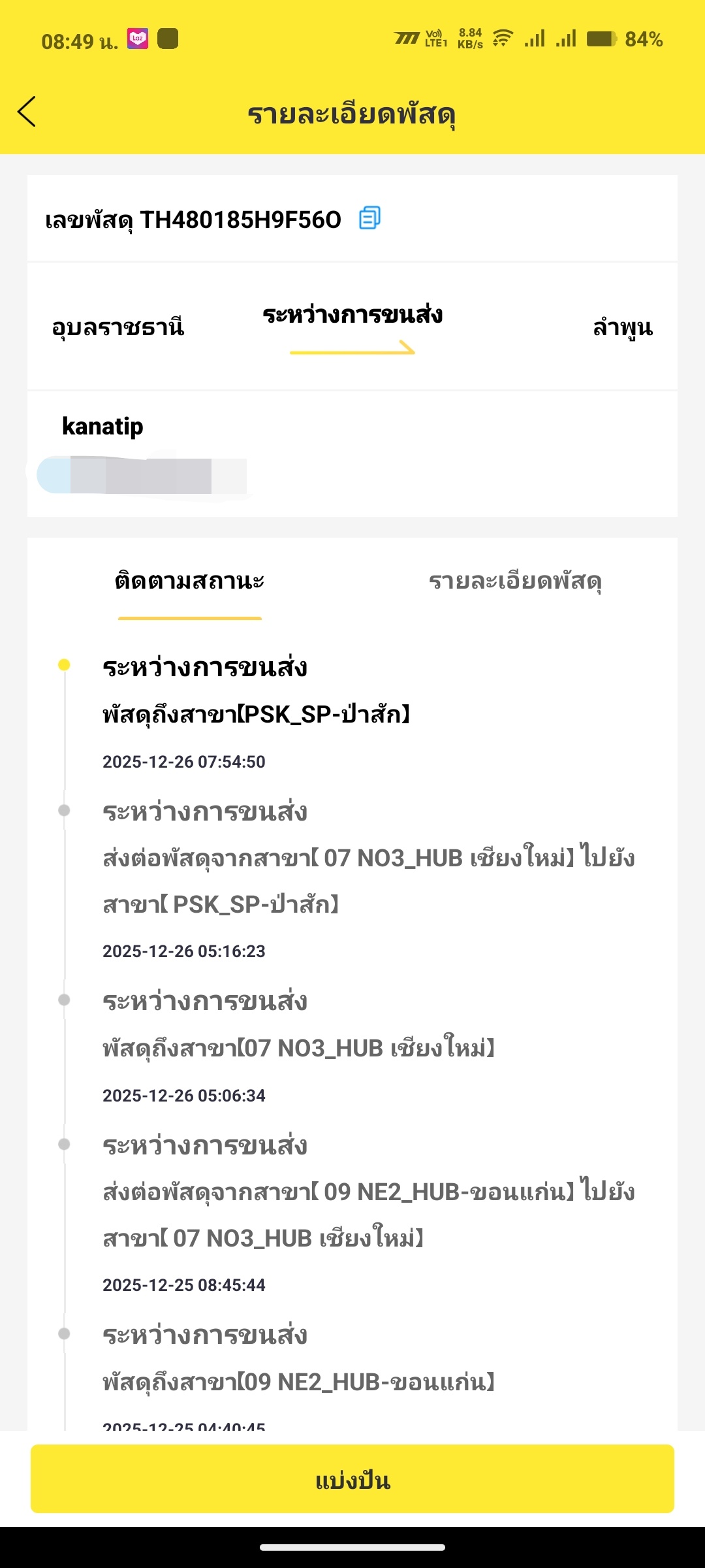 แต่สาขาอื่น ยกตัวอย่าง สาขา เหมืองง่า ลําพูน ของก็ถึงประมาณ 7 โมงเหมือนกัน