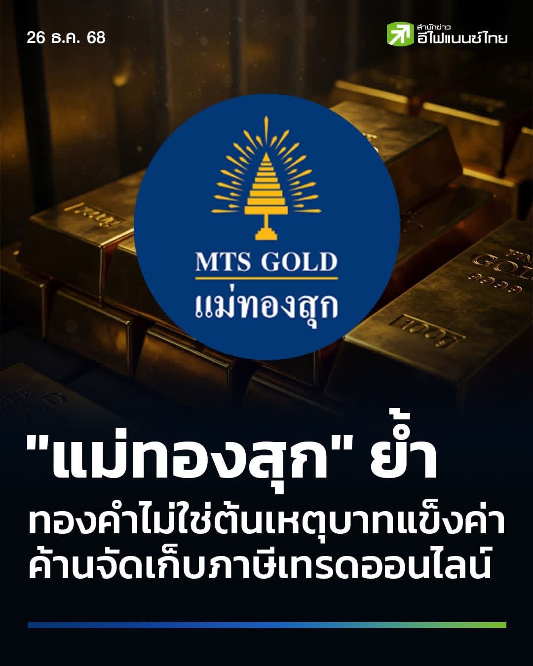 MTS Gold ปฏิเสธการซื้อขายทองคำเป็นสาเหตุให้เงินบาทแข็งค่า  แต่เป็นผลจากเงินดอลลาร์อ่อนค่าตามกลไกตลาด ยันผู้ประกอบการพร้อมร่วมมือ ธปท. บริหารความเสี่ยงค่าเงิน และคัดค้านแนวคิดจัดเก็บภาษีทองคำออนไลน์ หวั่นบิดเบือนตลาดและกระทบอุตสาหกรรมระยะยาว