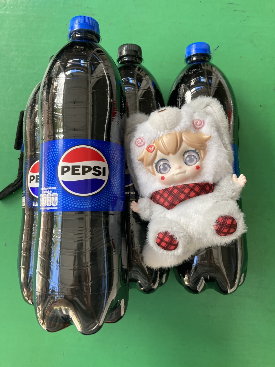 ตอนแรกก็ว่าจะซื้อให้ครบ 6 ชุด เอาไว้แจกเด็กๆแถวบ้านตอนปีใหม่ แต่หิ้วไม่ได้ค่ะ แขนไม่ดีด้ามเหล็กไว้ แค่ 4 ขวดกับน้ำแข็ง 1 ถุง