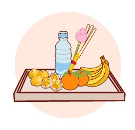 • เก็บของไหว้มาแบ่งกันกิน หรือแจกจ่าย ถือเป็นการต่อบุญ