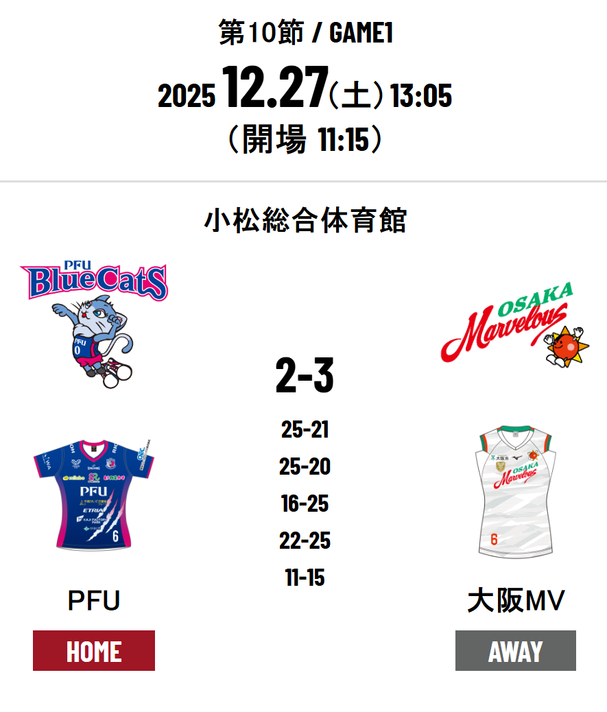 PFU Bluecats Ishikawa Kahoku 2 - 3 Osaka Marvelous
