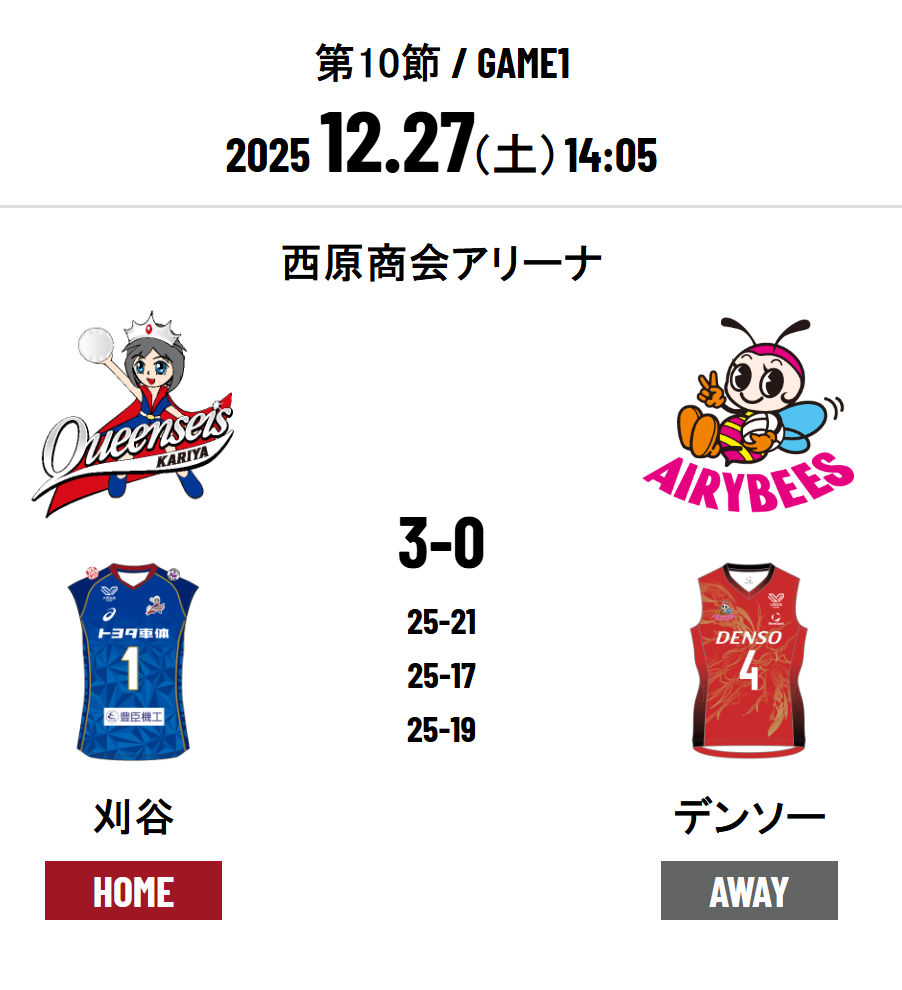 Queenseis Kariya 3 - 0 DENSO Airybees