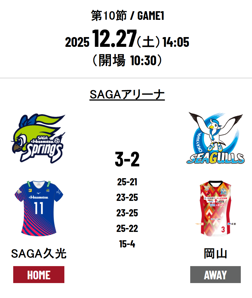 SAGA Hisamitsu Springs 3 - 2 Okayama Seagulls