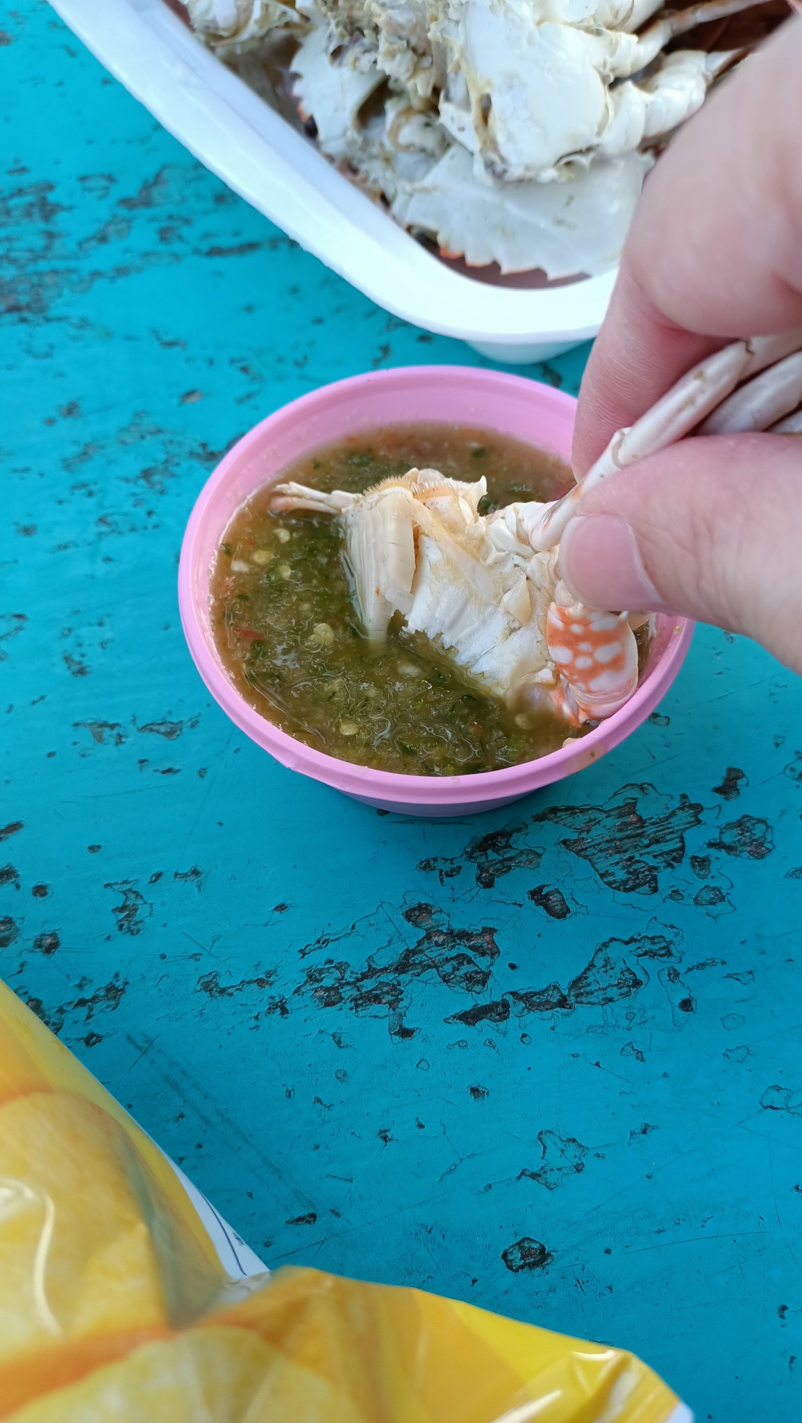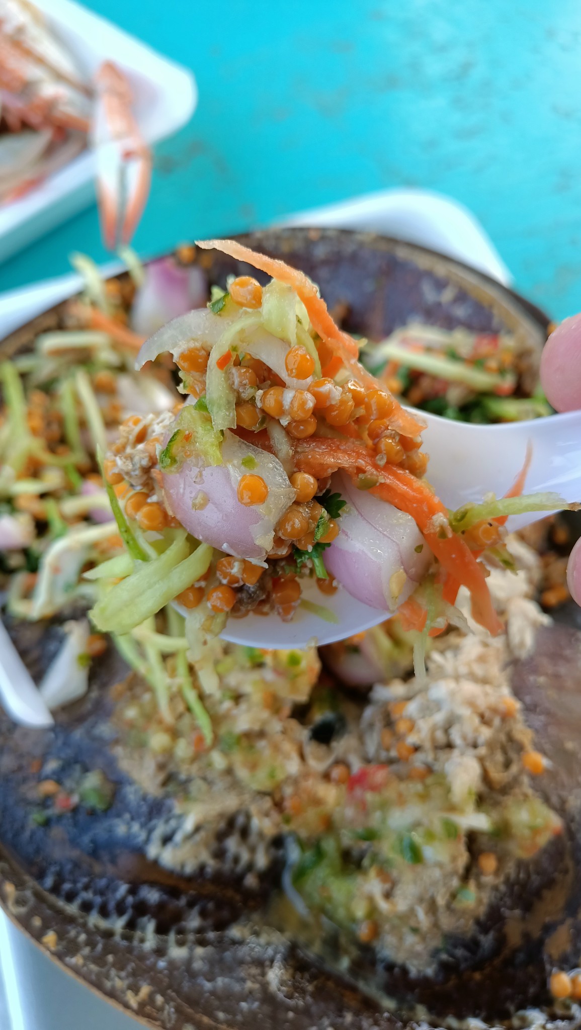 พาลูกกับภรรยา มาชะอำครับ เมนูโปรด คือยำไข่แมงดาทะเลครับ