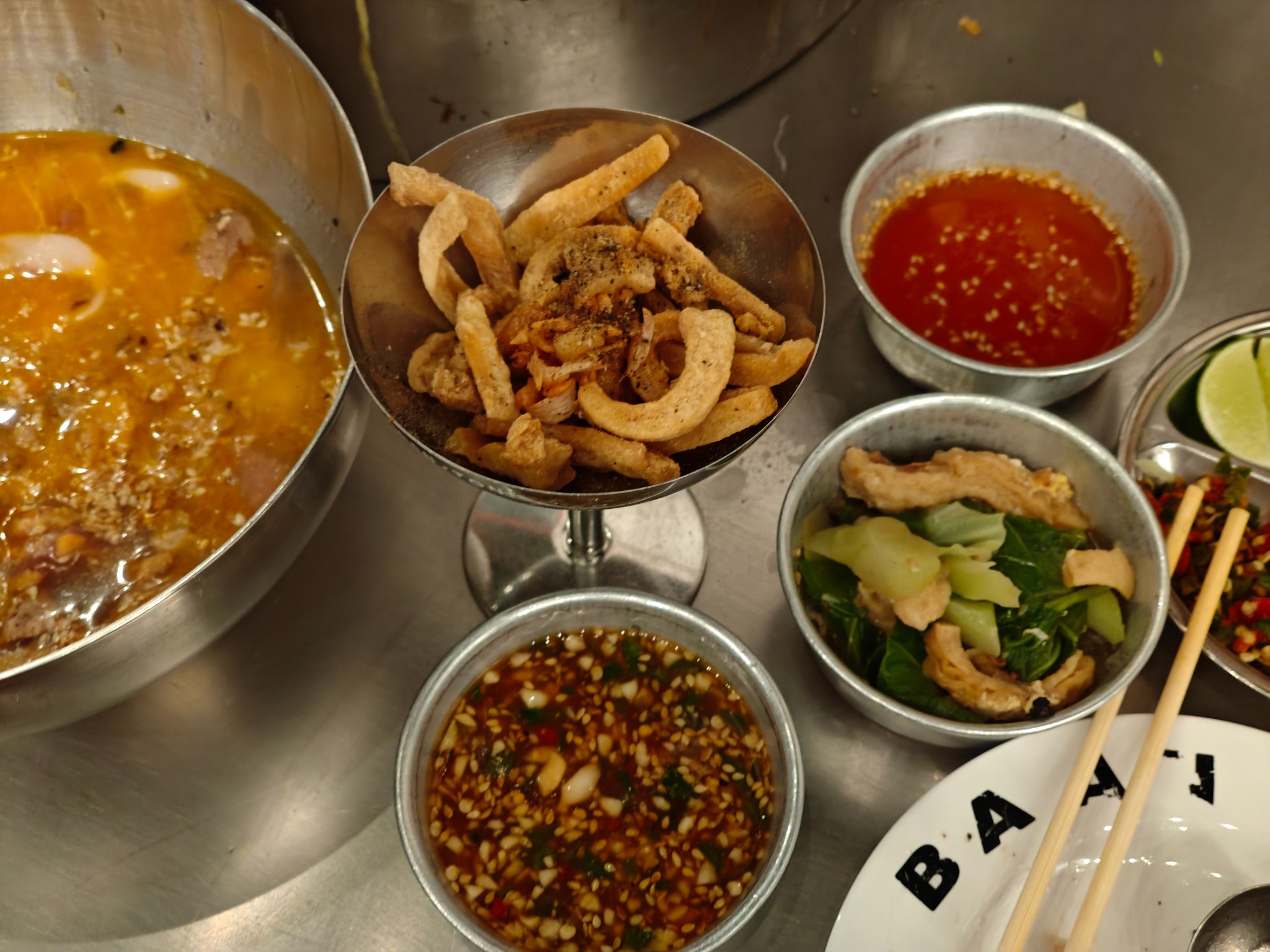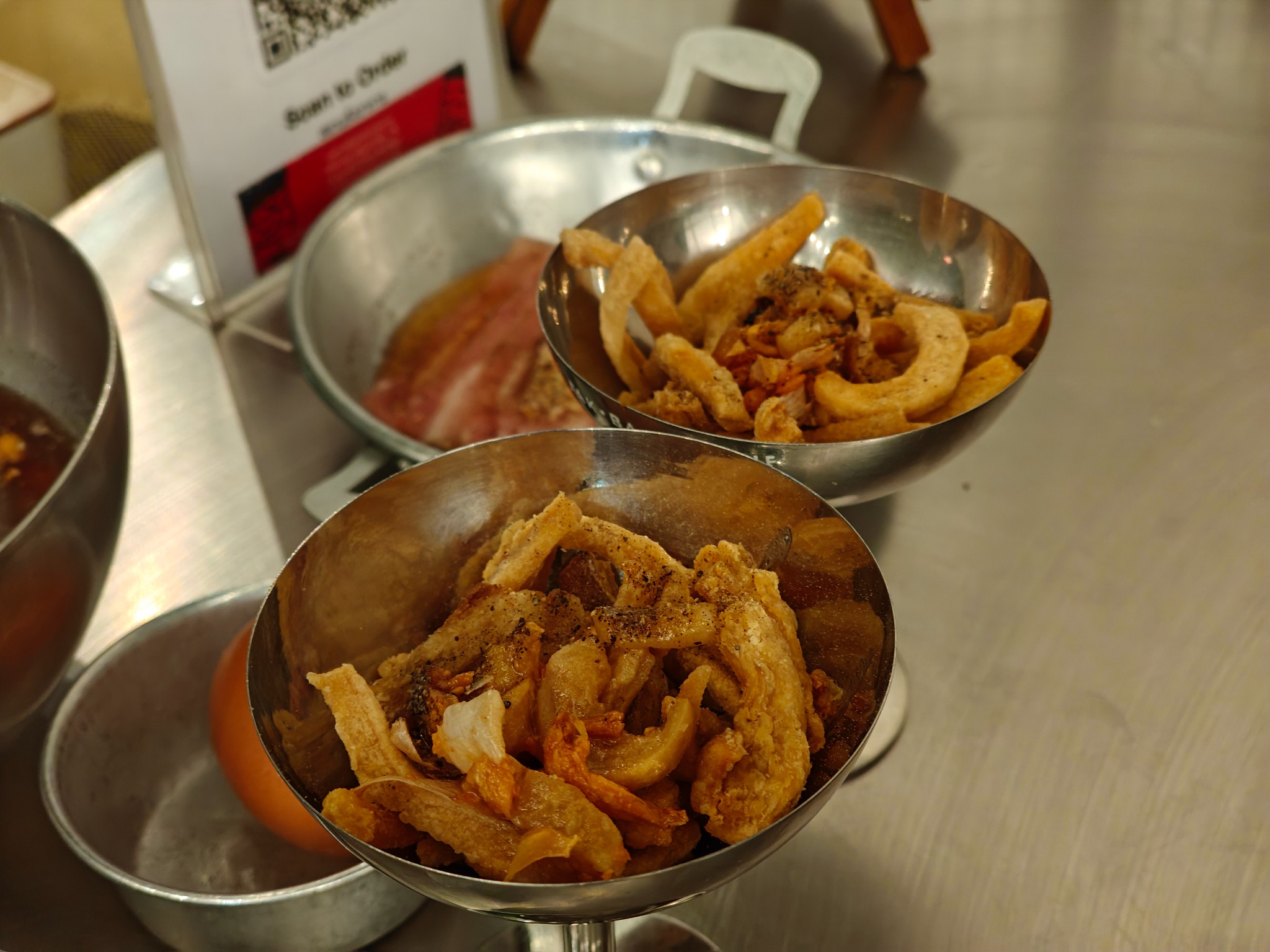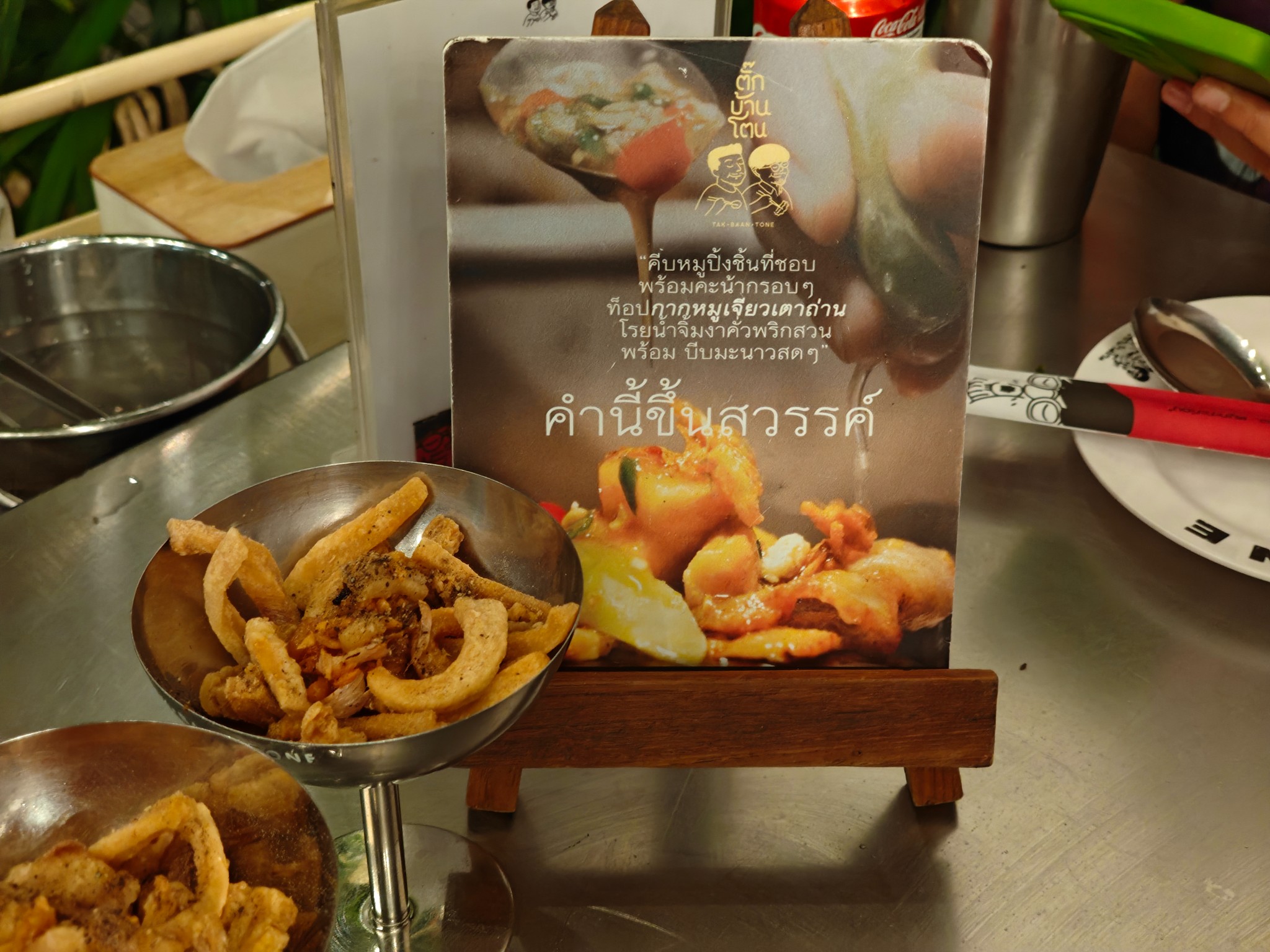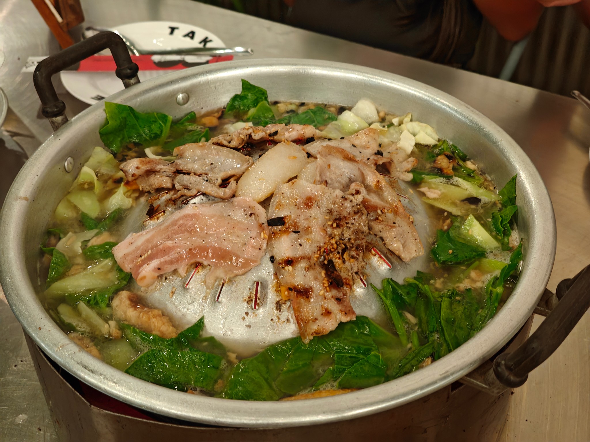 น้องๆพนักงานน่ารักบริการดีทุกคน กดสั่งปุ๊บมาส่งปั๊บ ตั้งเตาแล้วจะมีน้องพนักงานวางมันหมูและตักกากหมูเขียวโปะตรงกระทะ กลิ่นหอมม้ากกก
