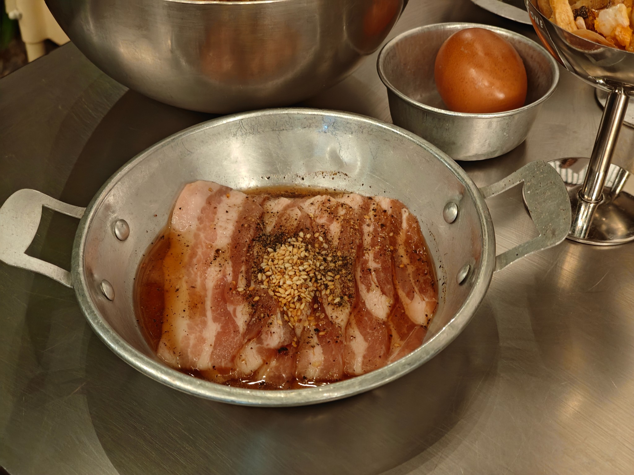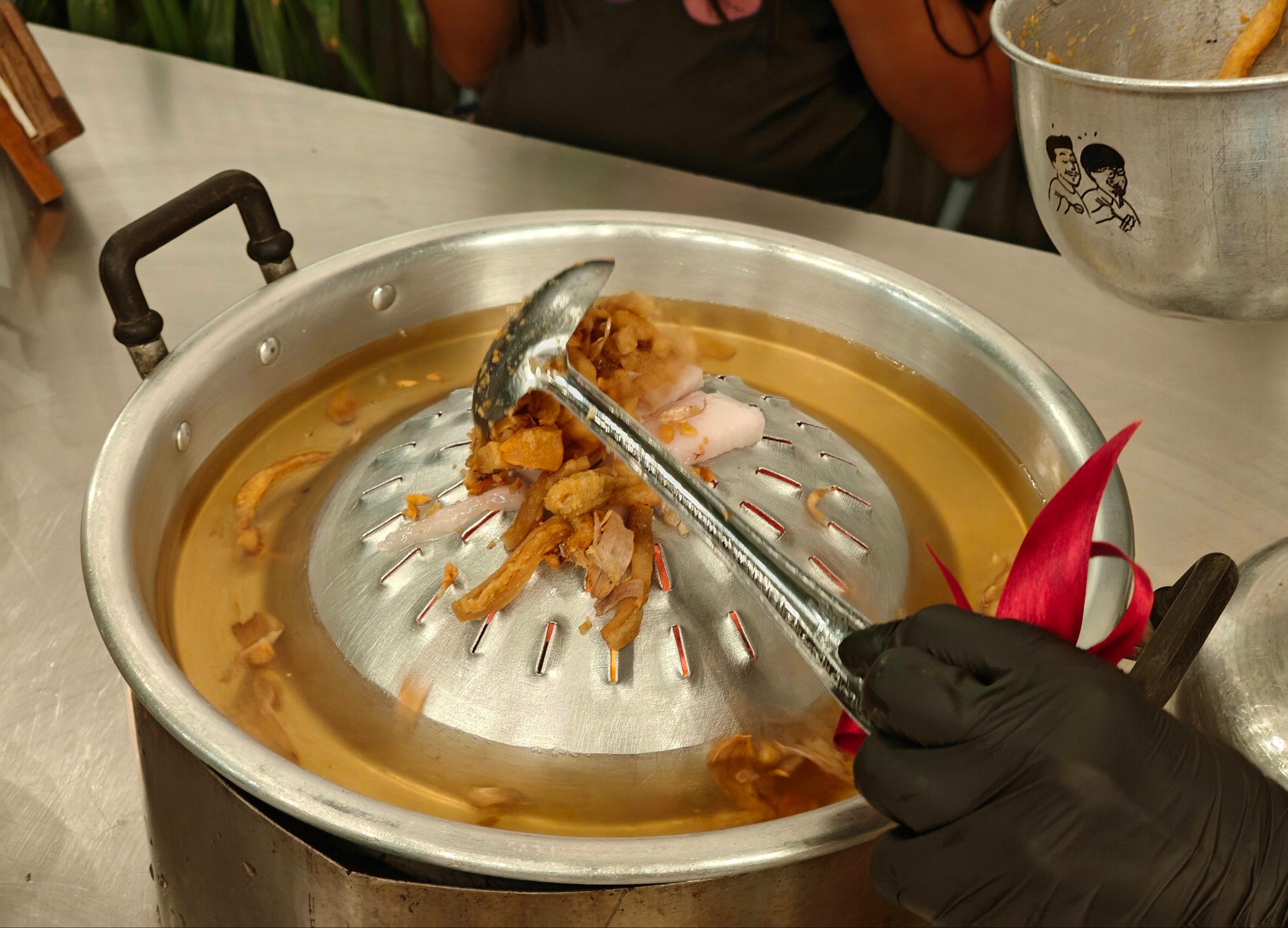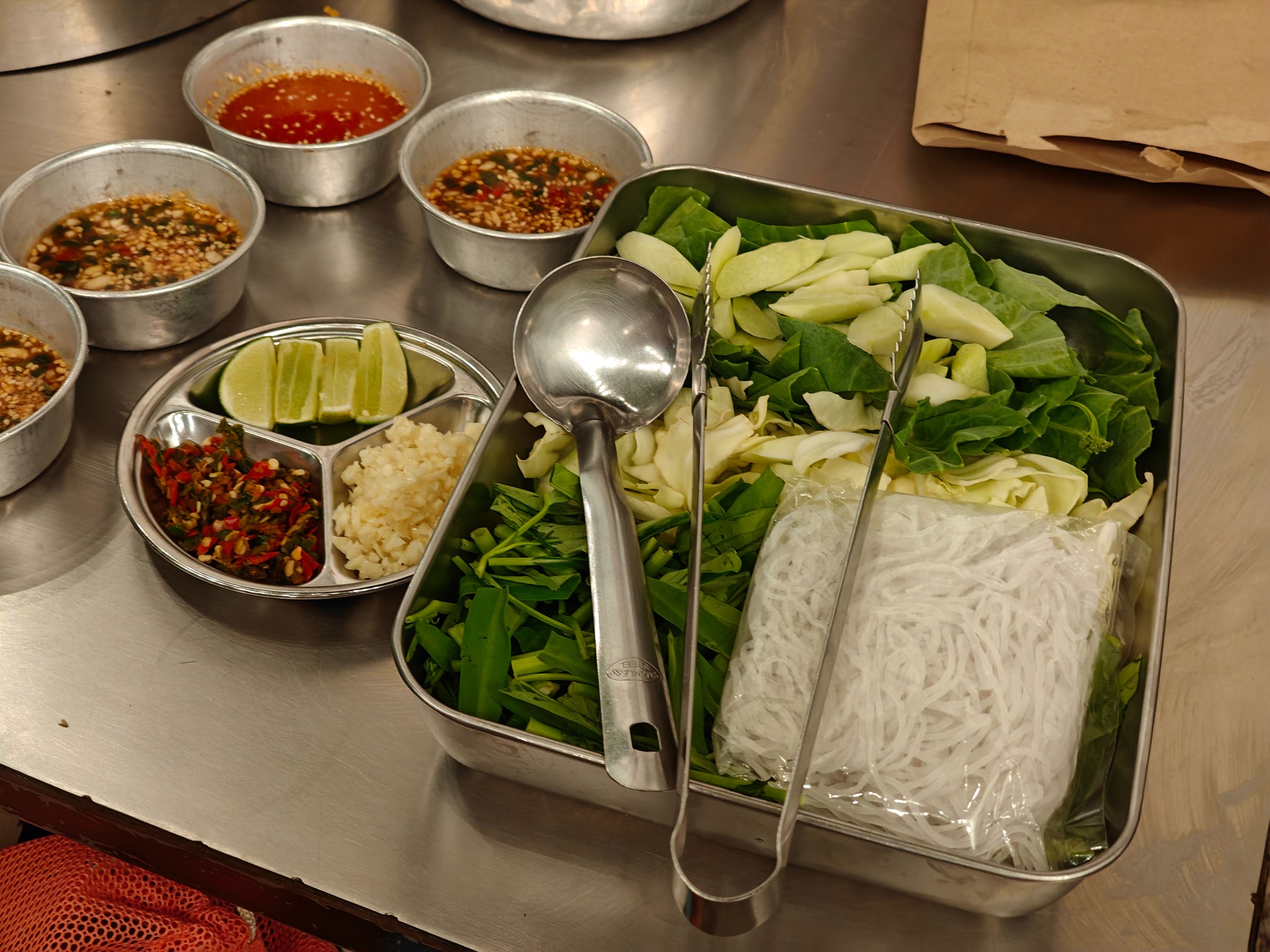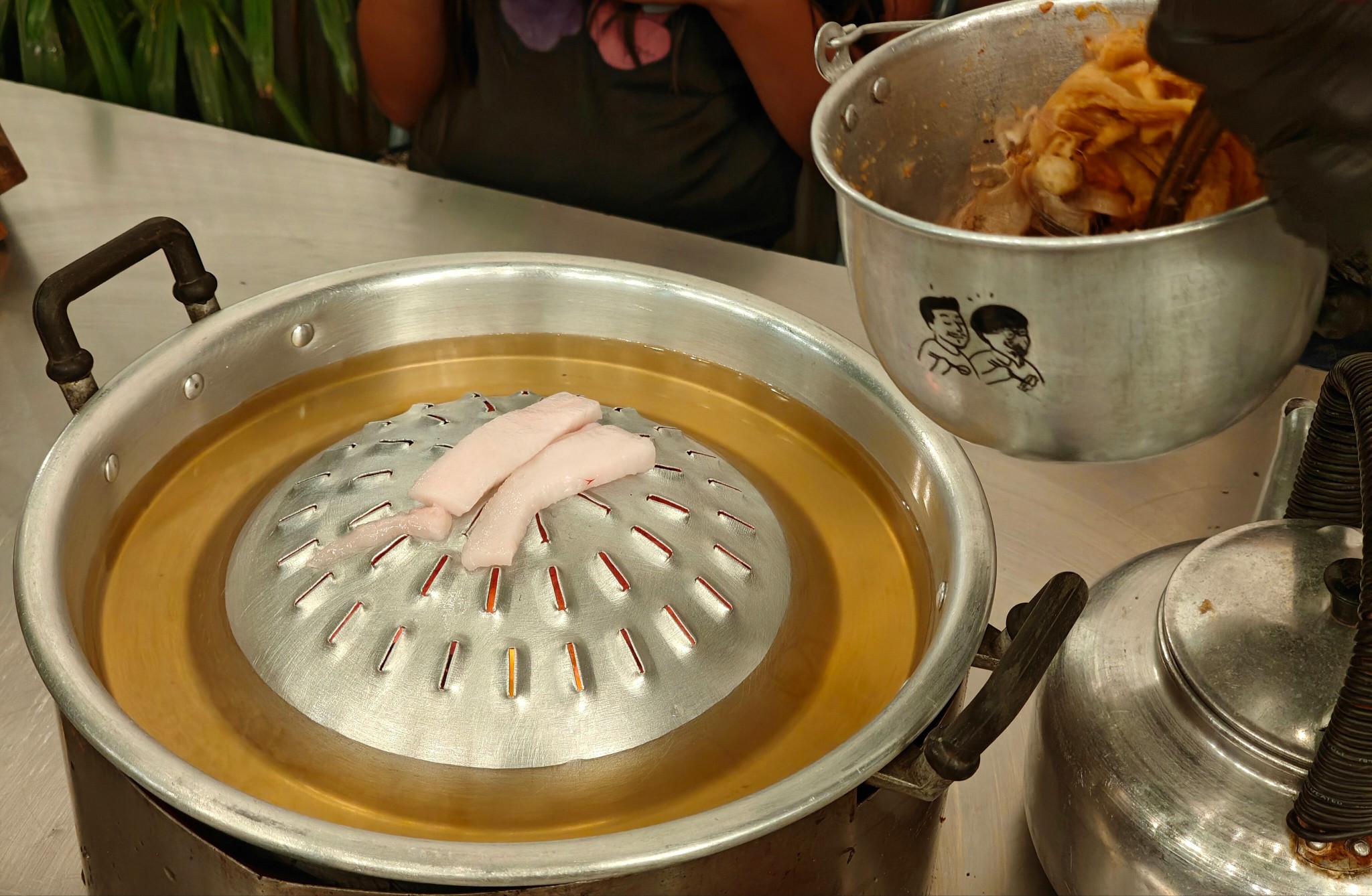 น้องๆพนักงานน่ารักบริการดีทุกคน กดสั่งปุ๊บมาส่งปั๊บ ตั้งเตาแล้วจะมีน้องพนักงานวางมันหมูและตักกากหมูเขียวโปะตรงกระทะ กลิ่นหอมม้ากกก