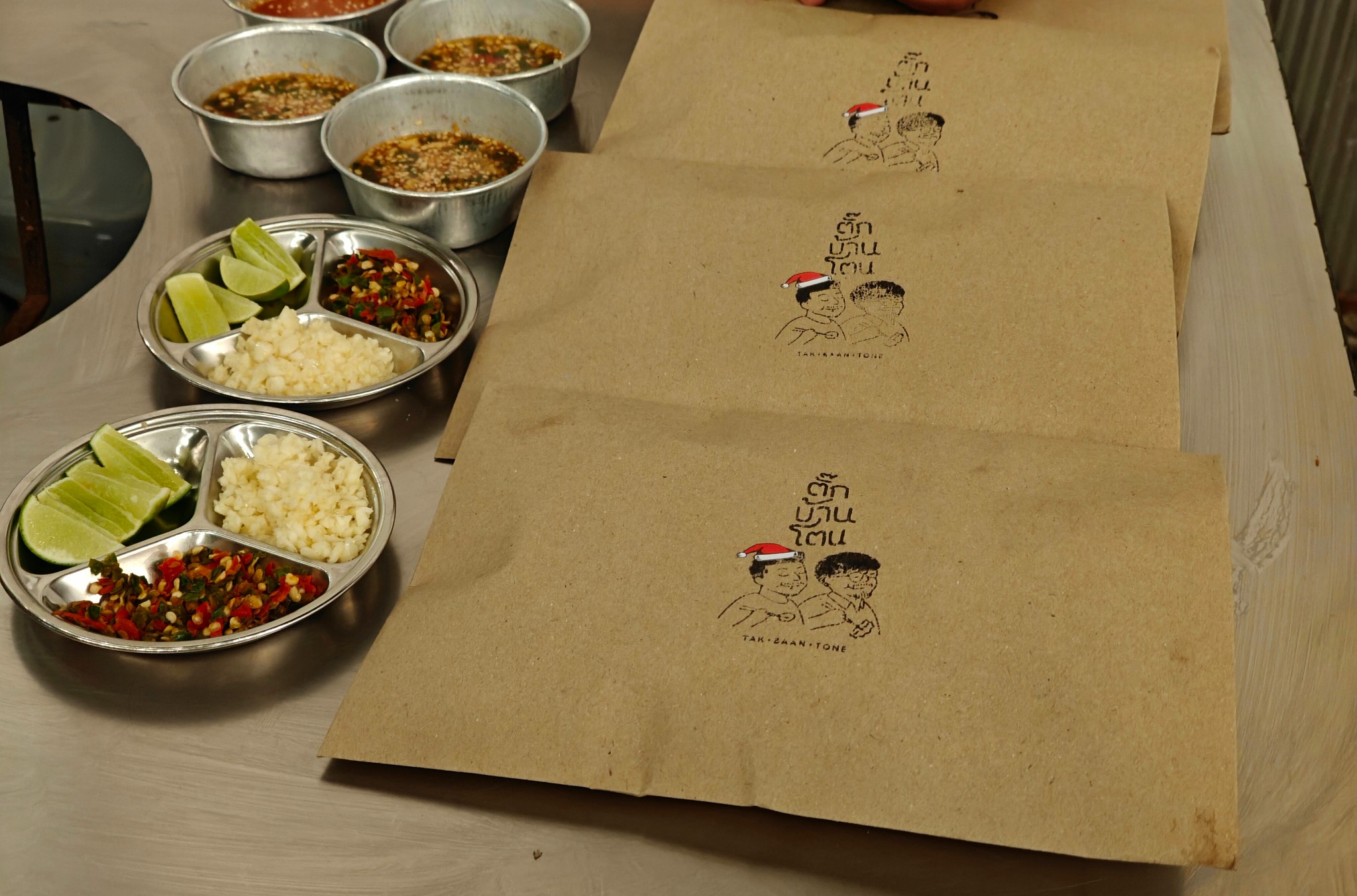 หลังเช็คบิล ร้านจะมีสัปปะรดพริกเกลือป่นเสิร์ฟปิดท้าย ดีงามมาก ล้างปากล้างคาวได้อย่างดี พร้อมแจกสติกเกอร์ของที่ระลึกกลับบ้าน 1 แผ่น
