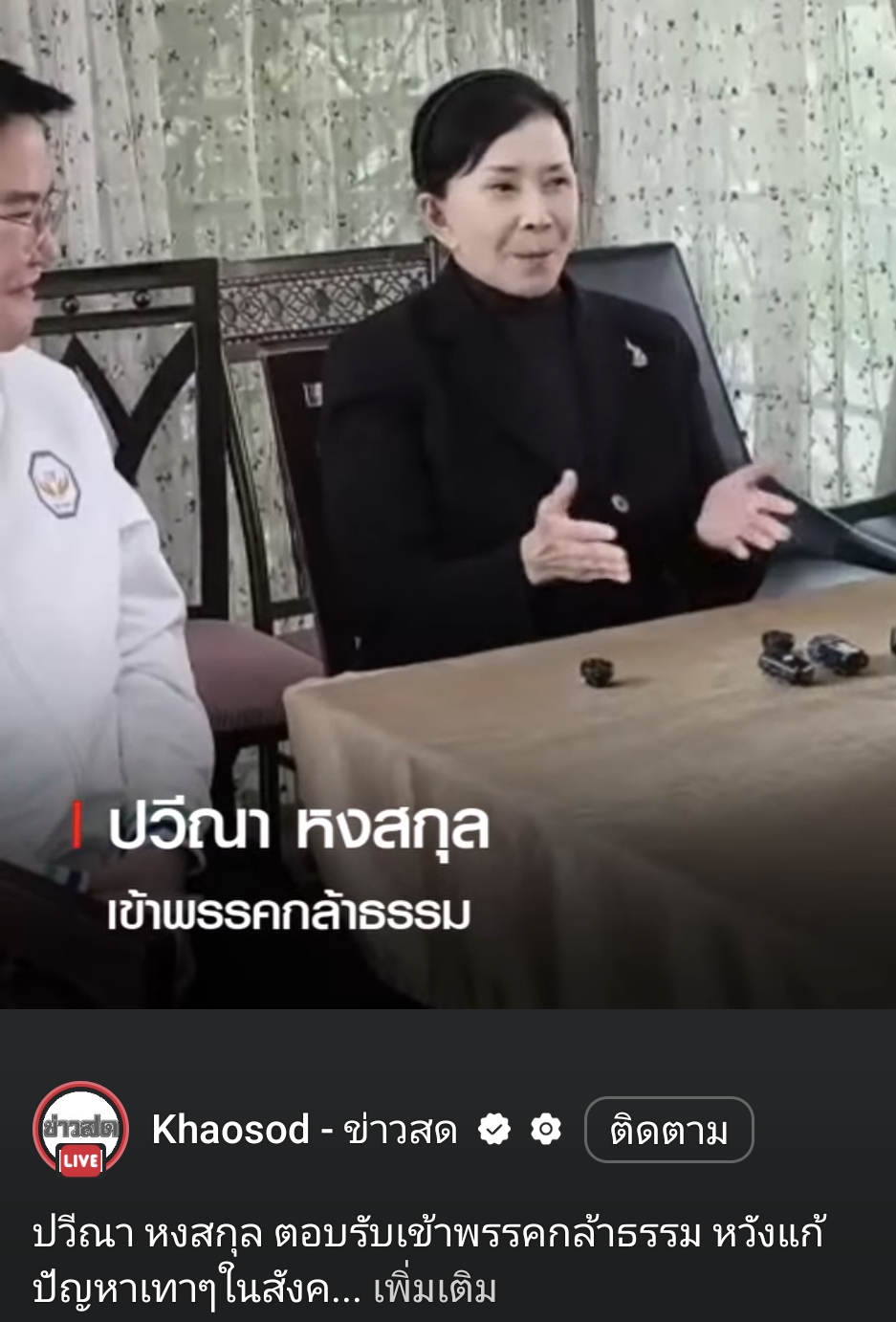 ปวีณา หงสกุล ตอบรับคำเชิญกล้าธรรม เป็นที่ปรึกษาพรรค