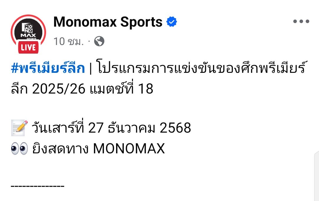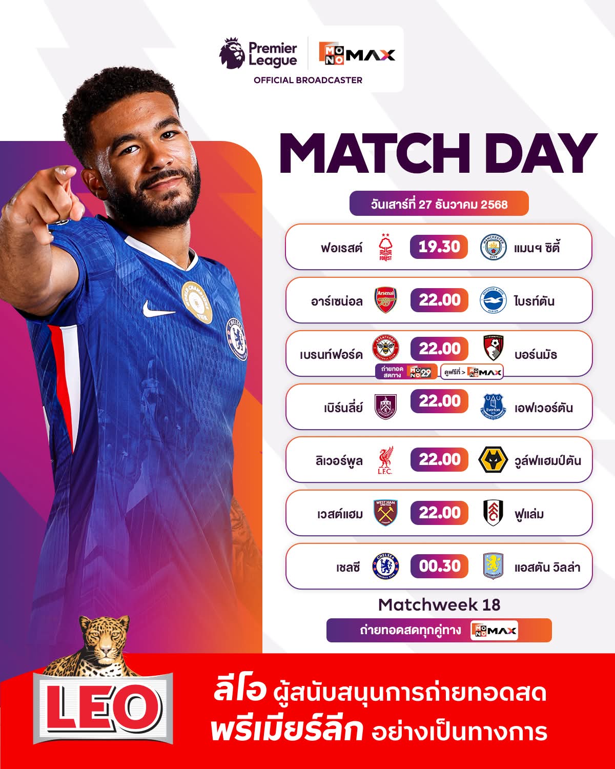 🔴 MATCH DAY ⚽🏴 ศึกพรีเมียร์ ลีก 2025/26 แมตช์ที่ 18 🗓️ วันเสาร์ ที่ 27 ธันวาคม 2568