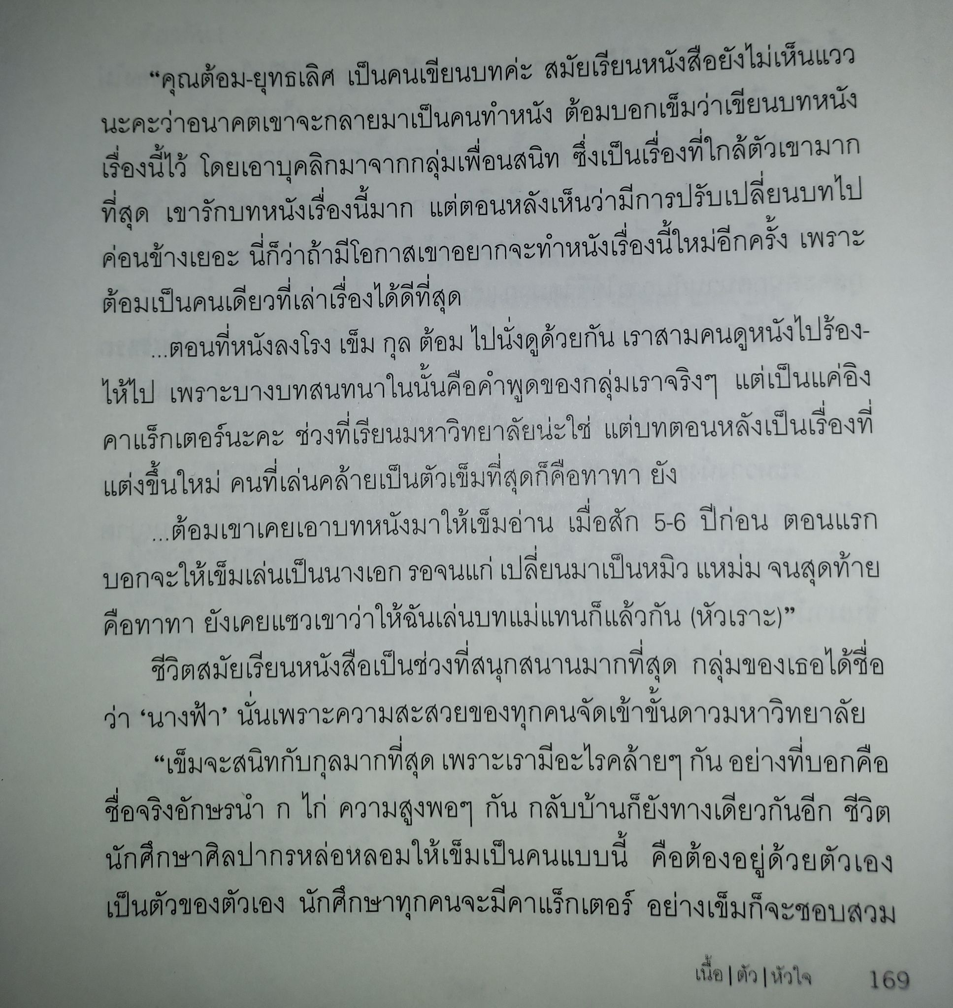 จากบทสัมภาษณ์ของ "เข็ม ตีสิบ" ในหนังสือเล่มหนึ่งค่ะ