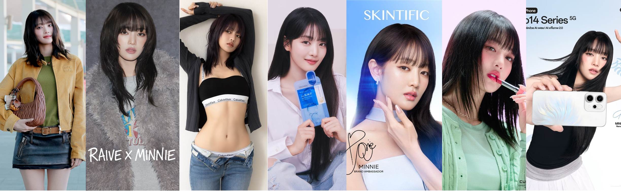 - เสื้อผ้า Miu Miu (อิตาลี) และ Raive (เกาหลี) แต่ช่วงปลายปีมินนี่มีถ่ายงานกับ Calvin Klein (อเมริกา) บ่อยมาก แต่ยังไม่มีประกาศอย่างเป็นทางการว่ามีตำแหน่งอะไรแล้วหรือยัง