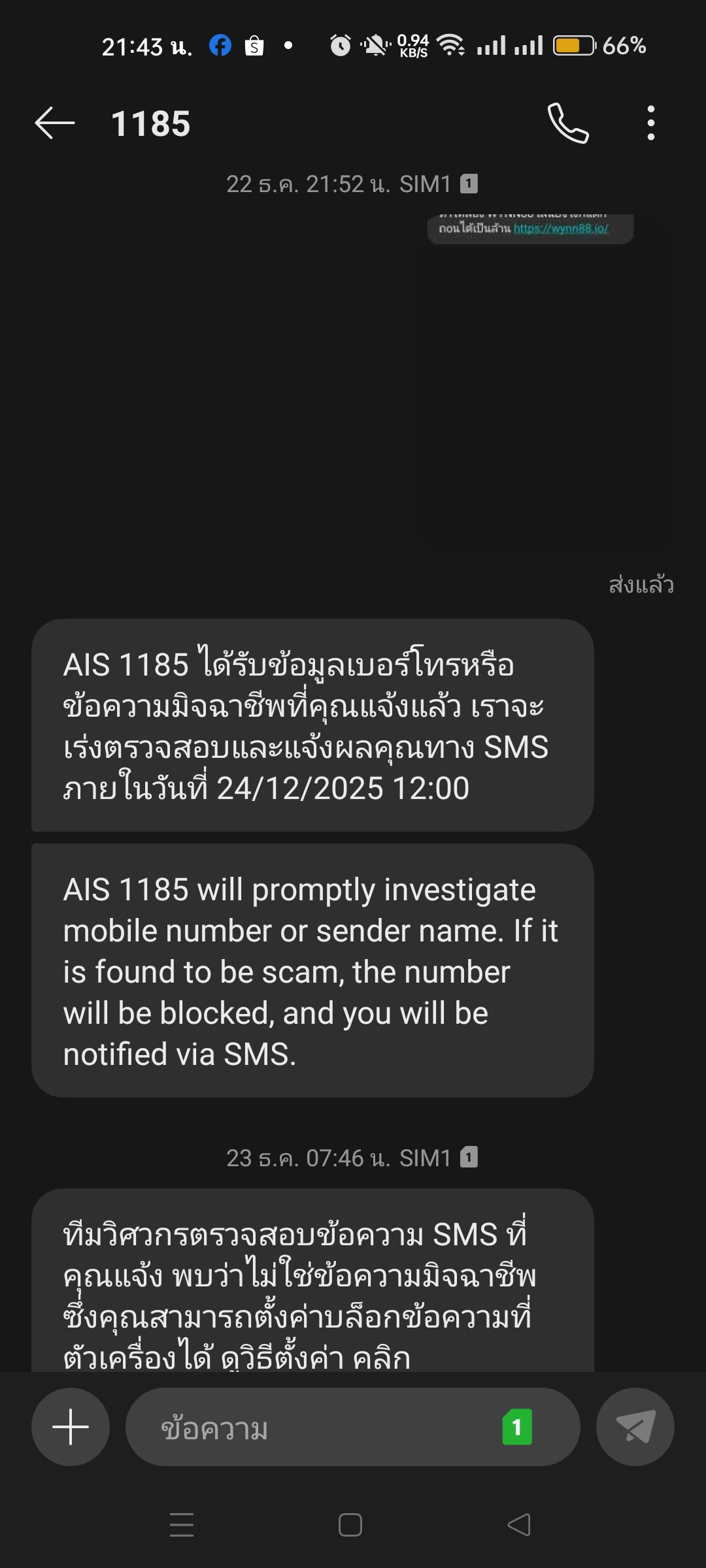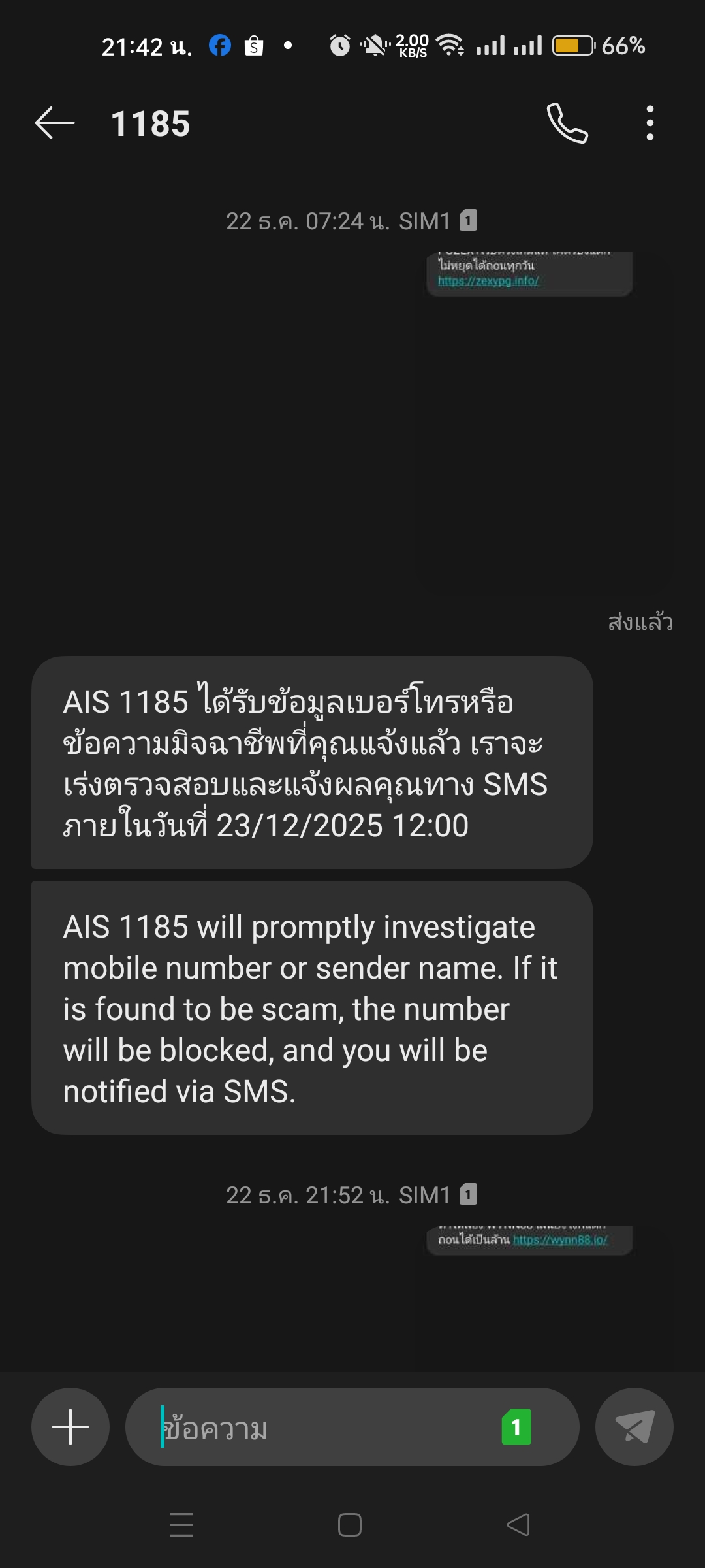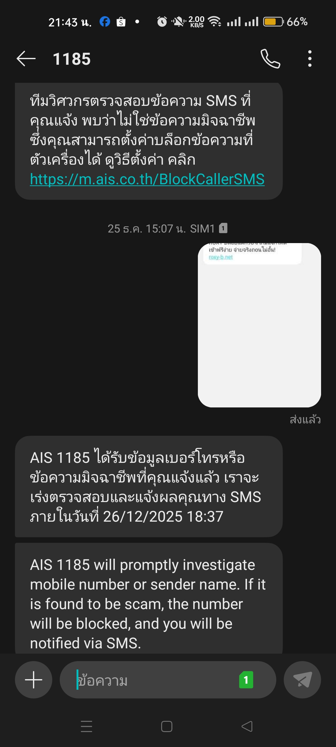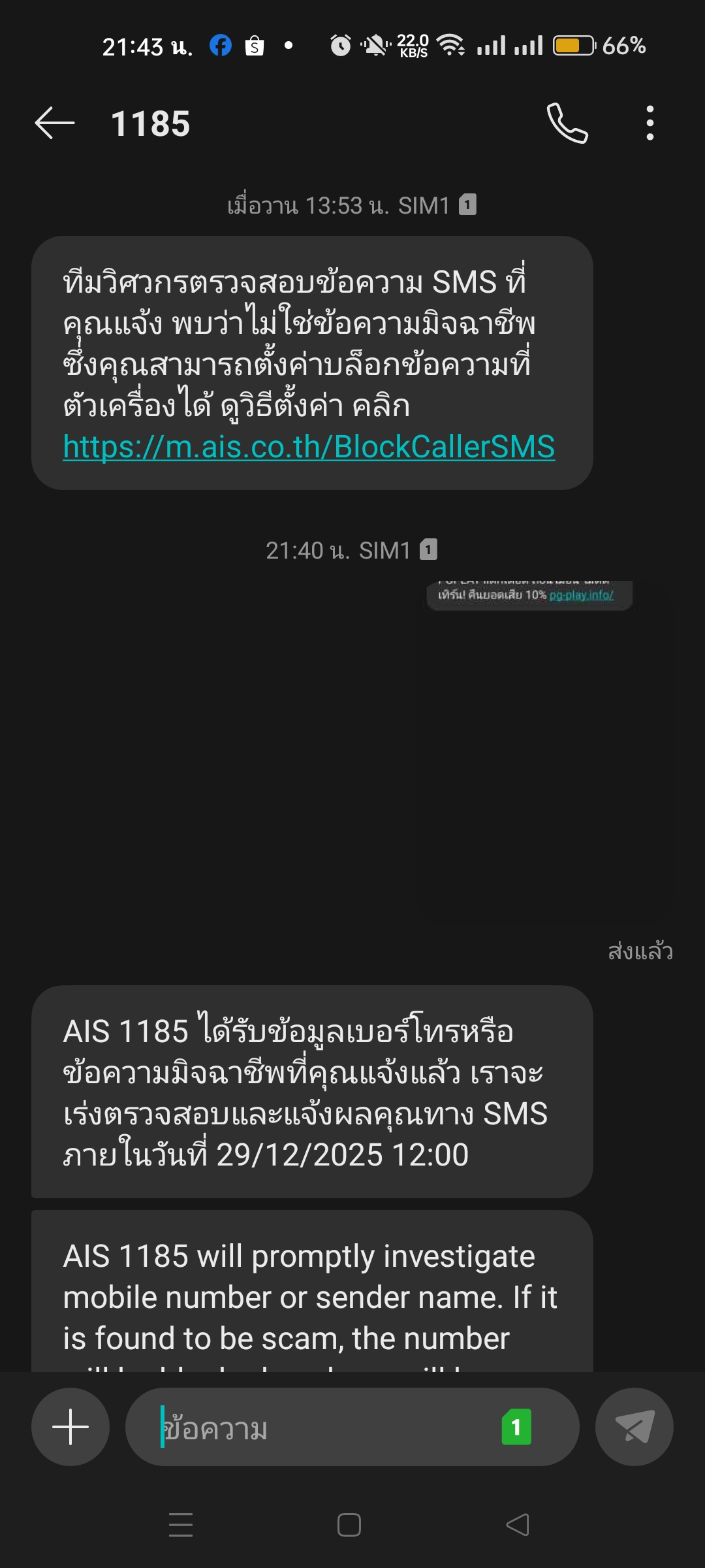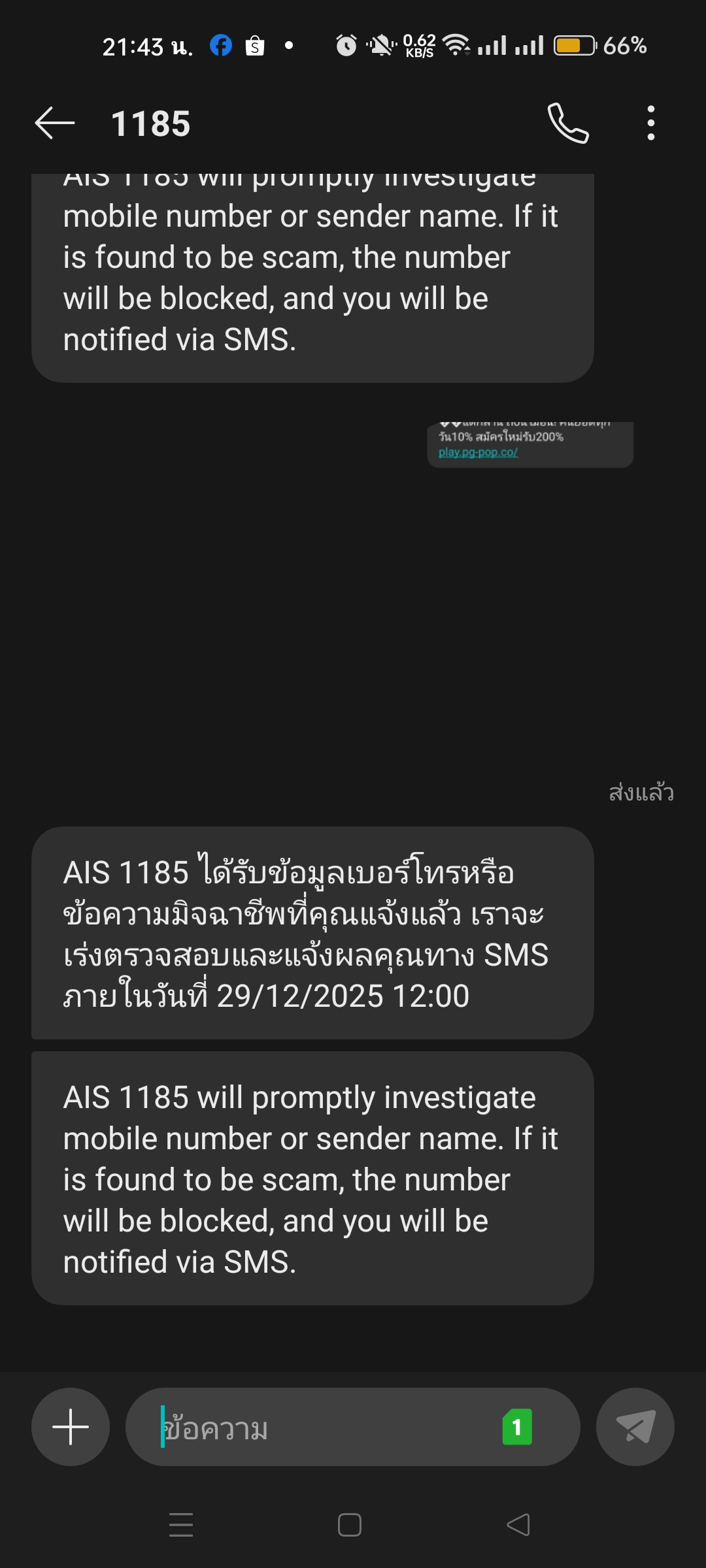 Ais แจ้งว่า sms ลิงค์พนัน ไม่ใช่หมายเลขมิจฉาชีพ